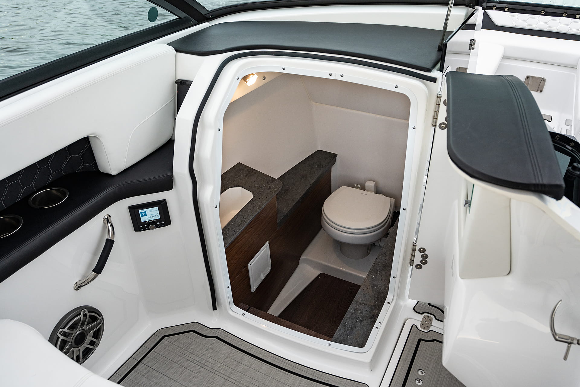 The HD2C is built for “moments together” on the water, featuring an optimized cockpit space and twin sport bucket seats. With its signature windshield and spacious under-seat storage, it provides big-boat versatility in an approachable package. It is the perfect entry-level vessel for family fun, combining a large bow with a high-quality standard stereo system.