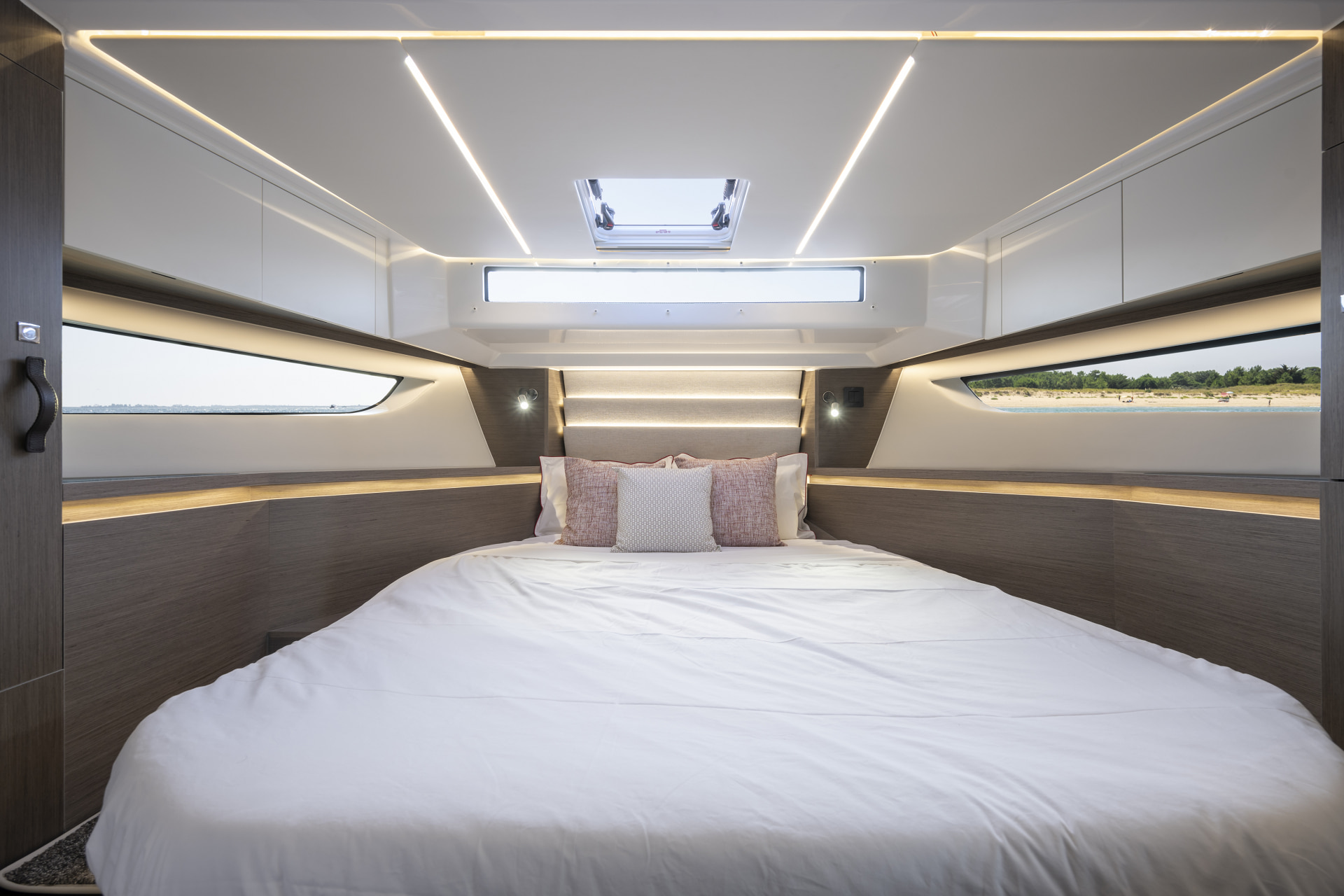 The NC 1295 Coupé adapts effortlessly to every requirement, offering the full spectrum of the line’s advantages – from modular living spaces to intelligent layouts – all within a nearly 13-meter vessel. Enjoy exceptional comfort and ample space with three cabins featuring expansive windows and abundant storage alongside two well-appointed head compartments, ensuring you can escape and indulge in extended cruising experiences.
