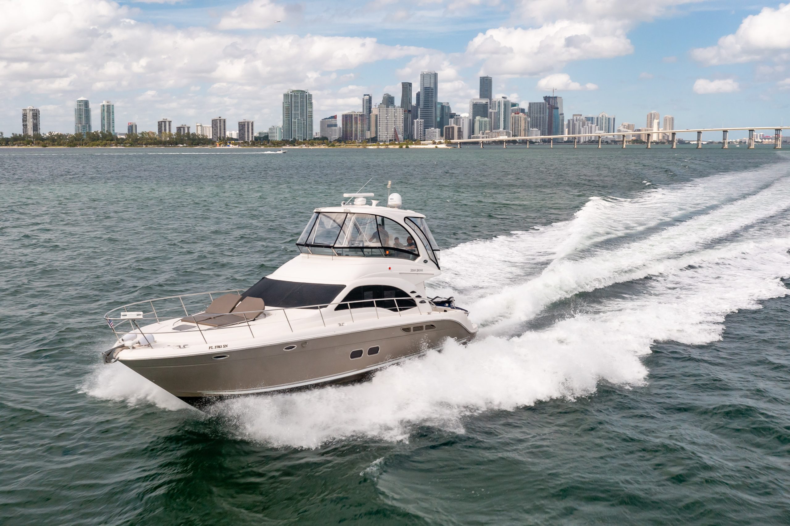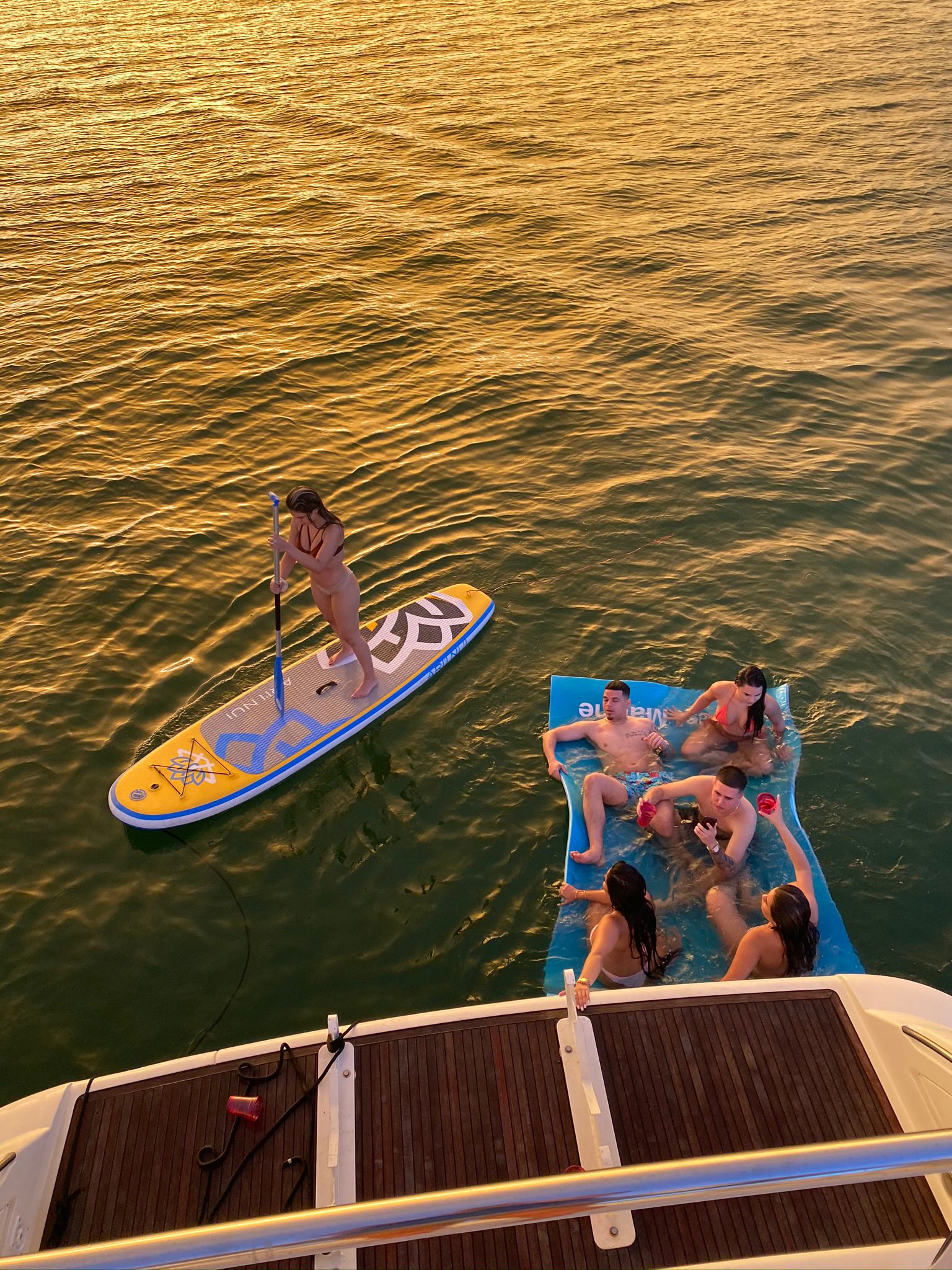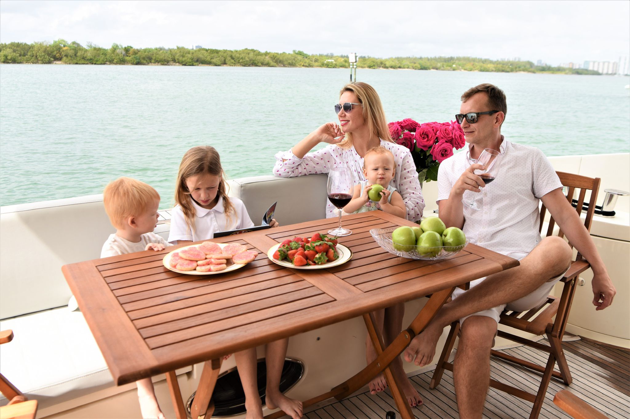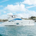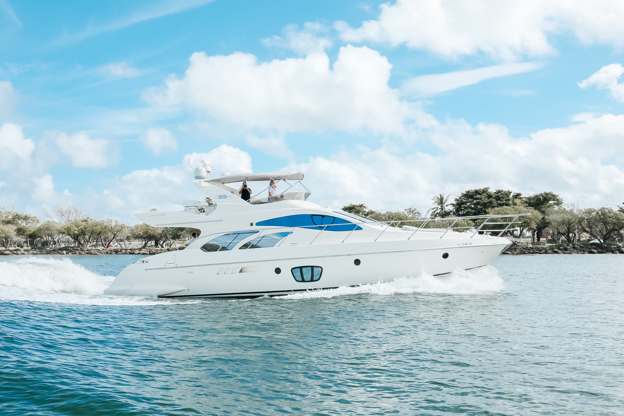 Looking to explore all that Miami has to offer for a day? Then look no further than this stylish 55′ Azimut Flybridge. With bright woodwork and enhanced audio throughout this fast cruising motor yacht provides the perfect amount of both entertainment and relaxation. She comes with three staterooms, two bathrooms, and a massive flybridge, sure to be the hotspot for your charter. Once you step aboard, you’ll wish you had reserved for longer. Enjoy.
