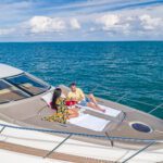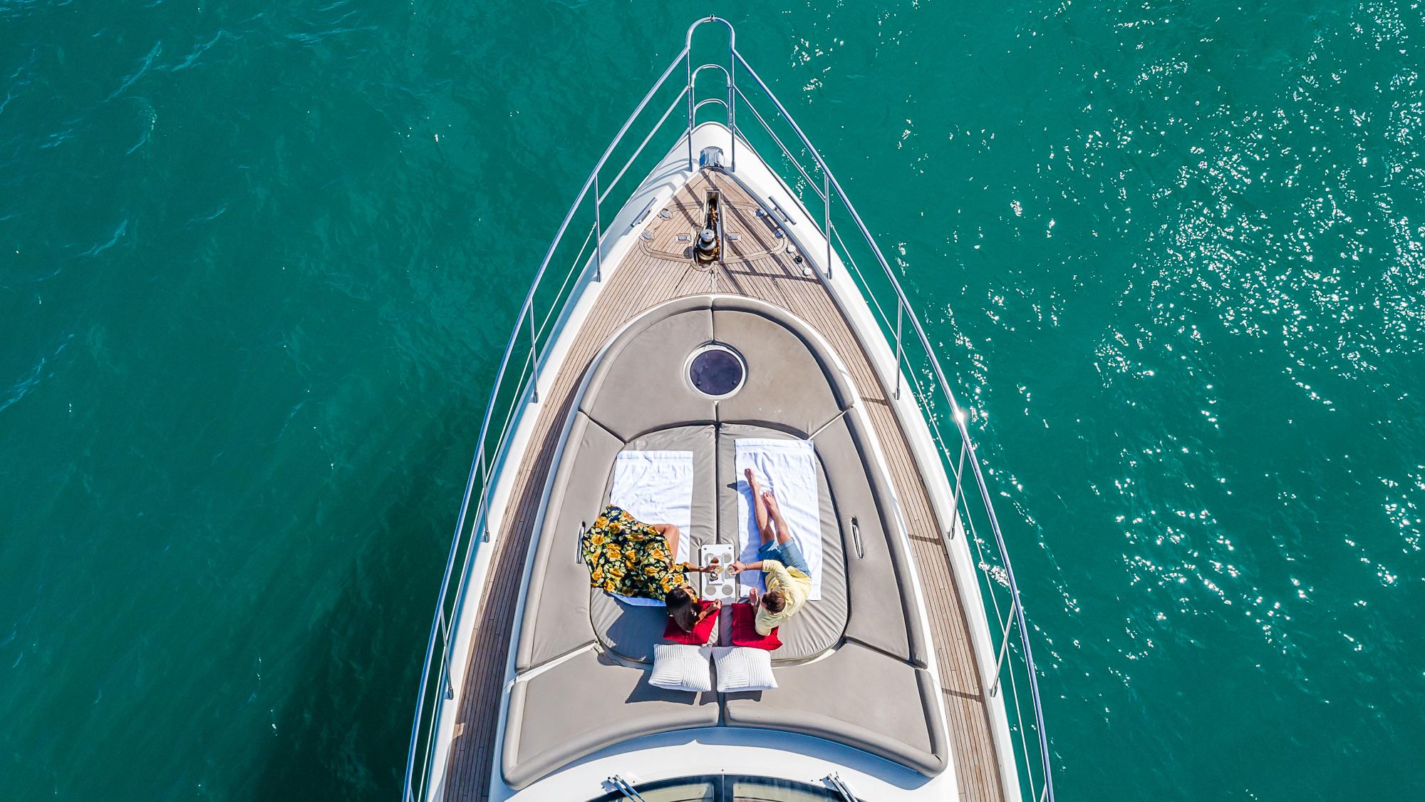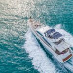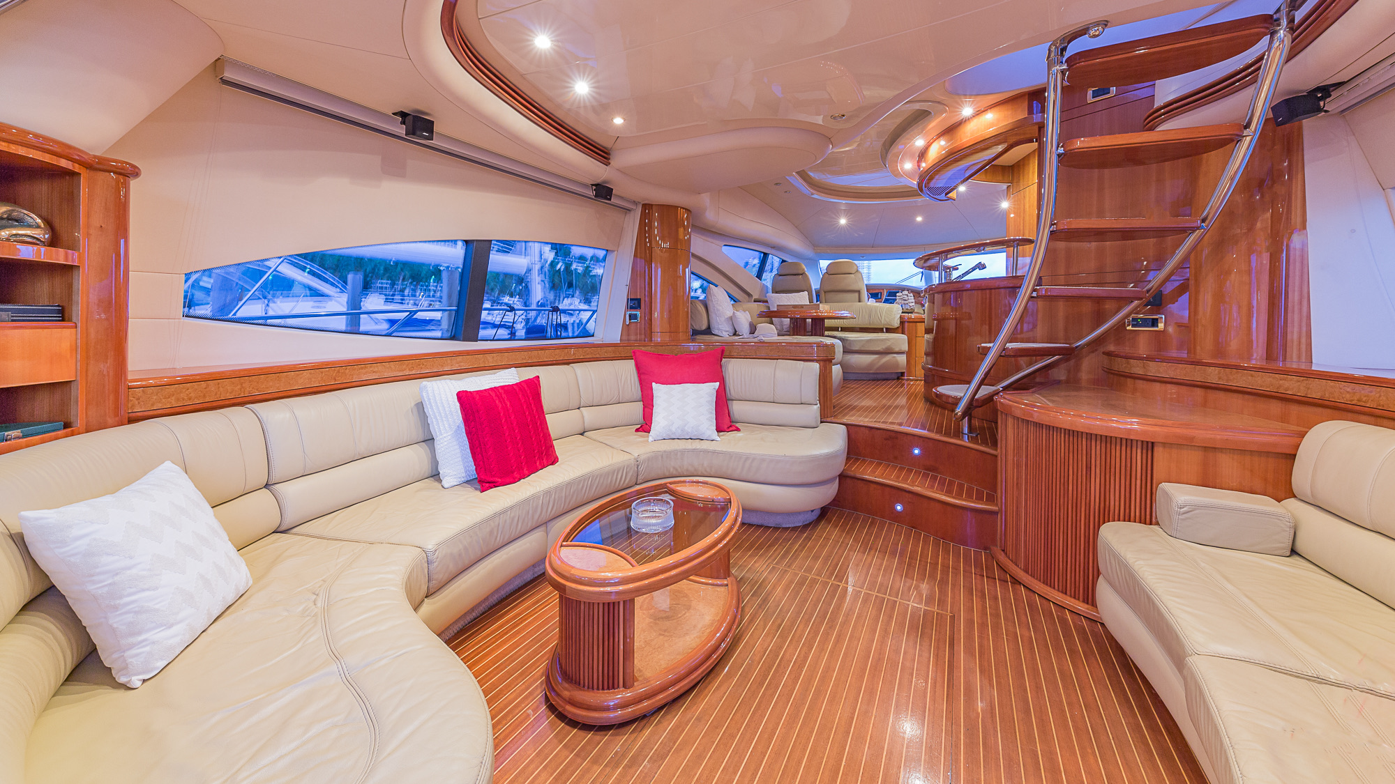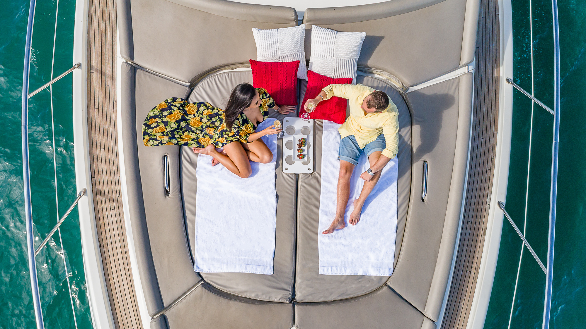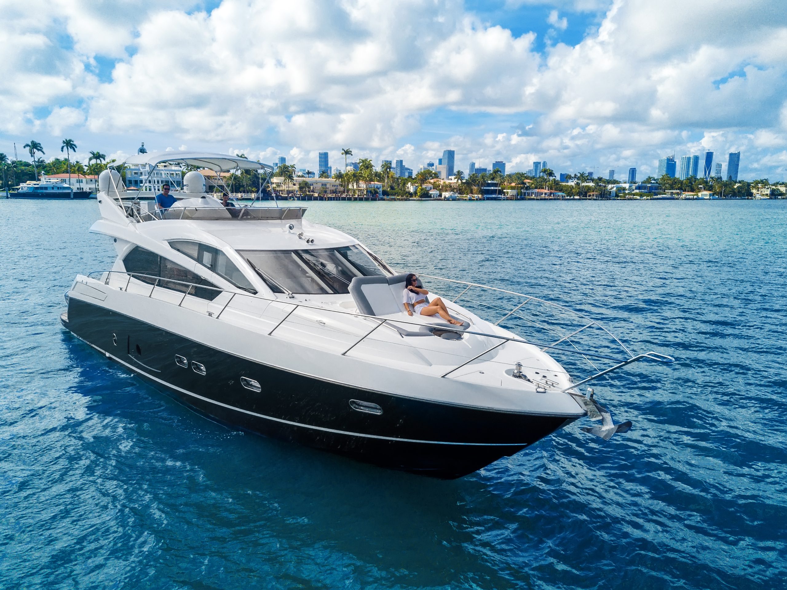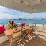 This Miami luxury yacht charter feature a spacious sun deck and flybridge with BBQ, perfect to relax and soak in the sun with friends while cruising along South Florida.