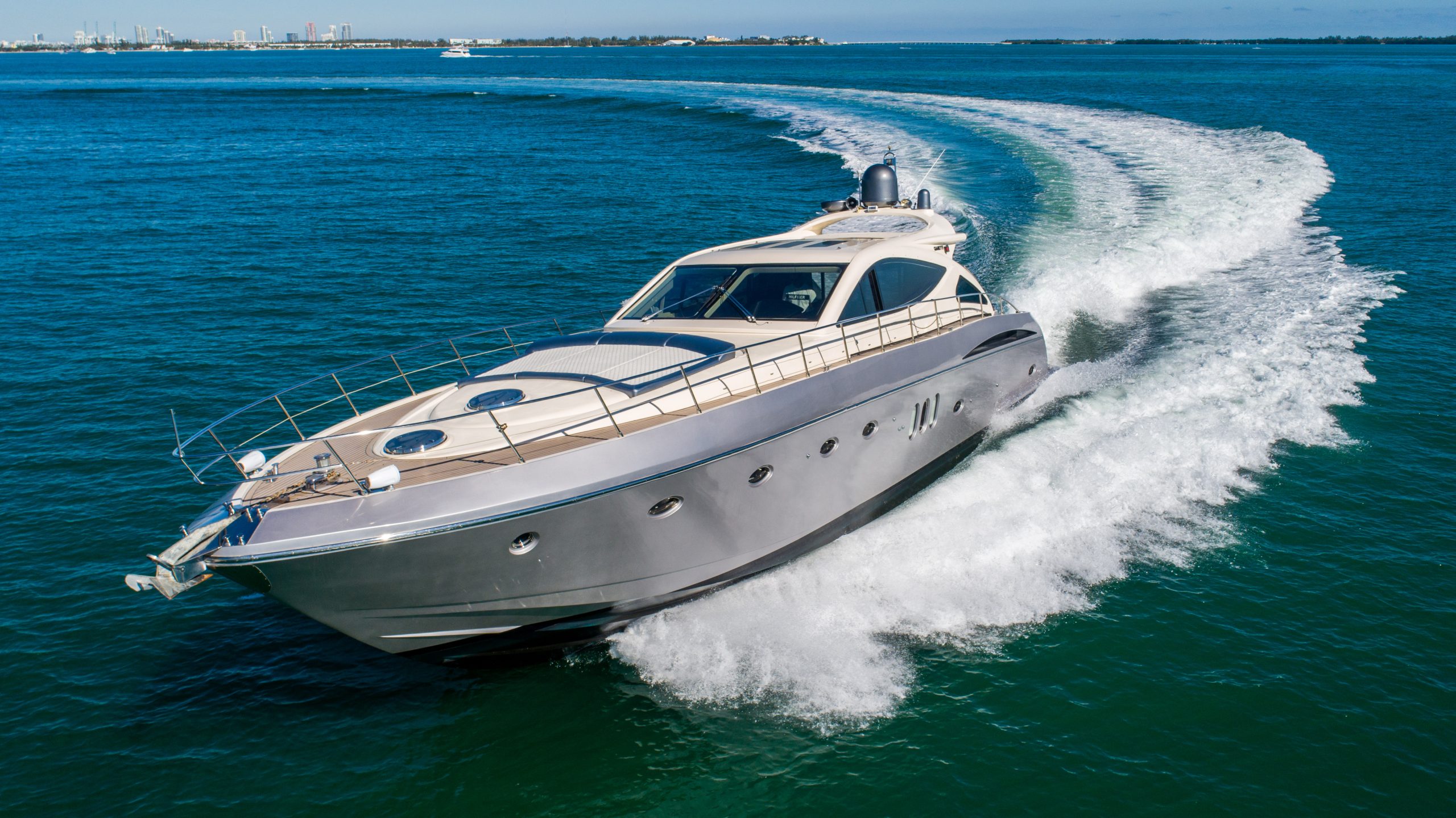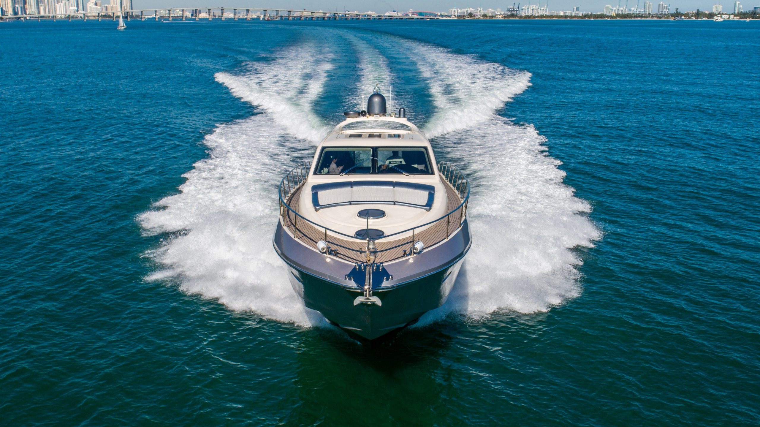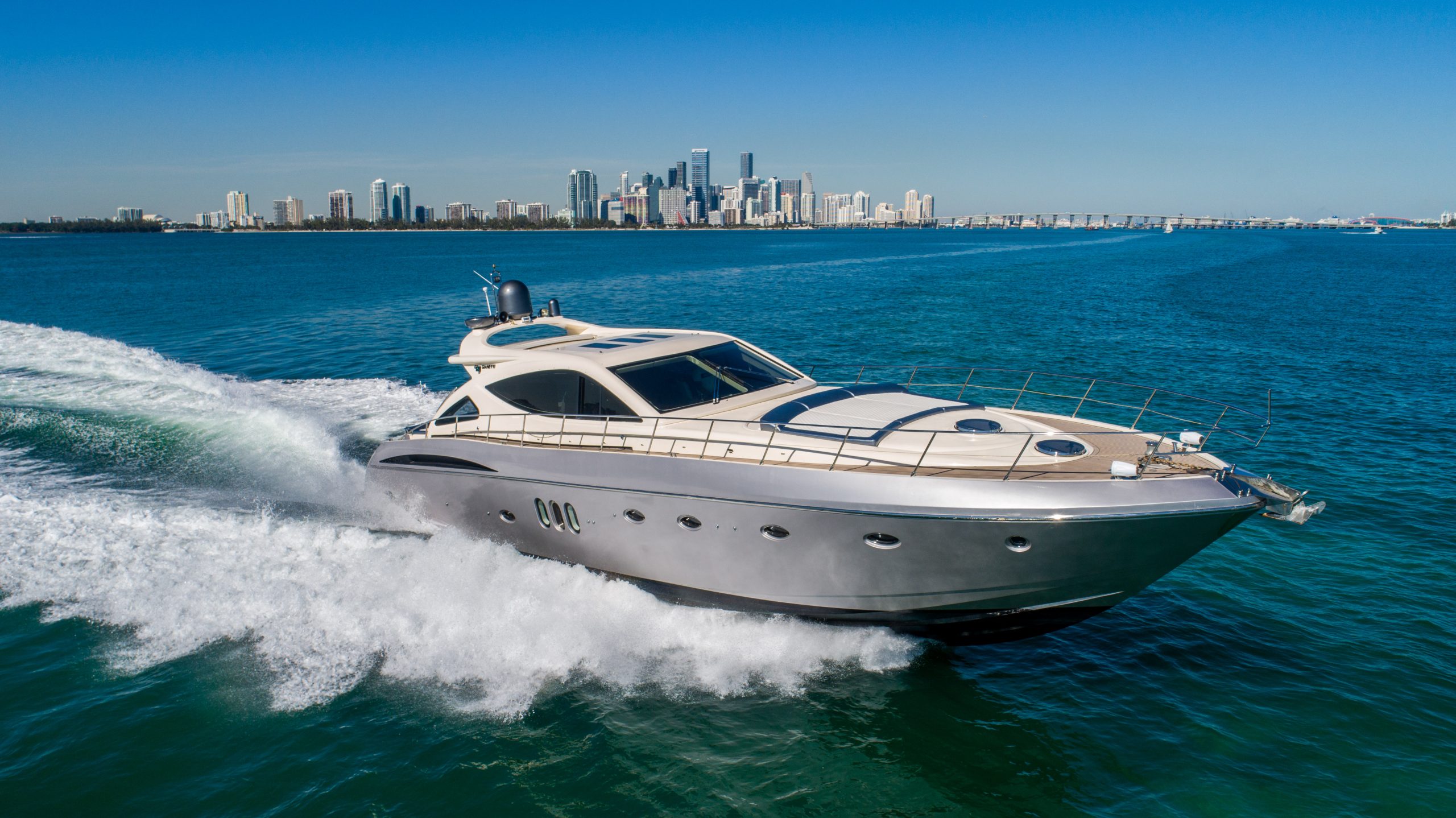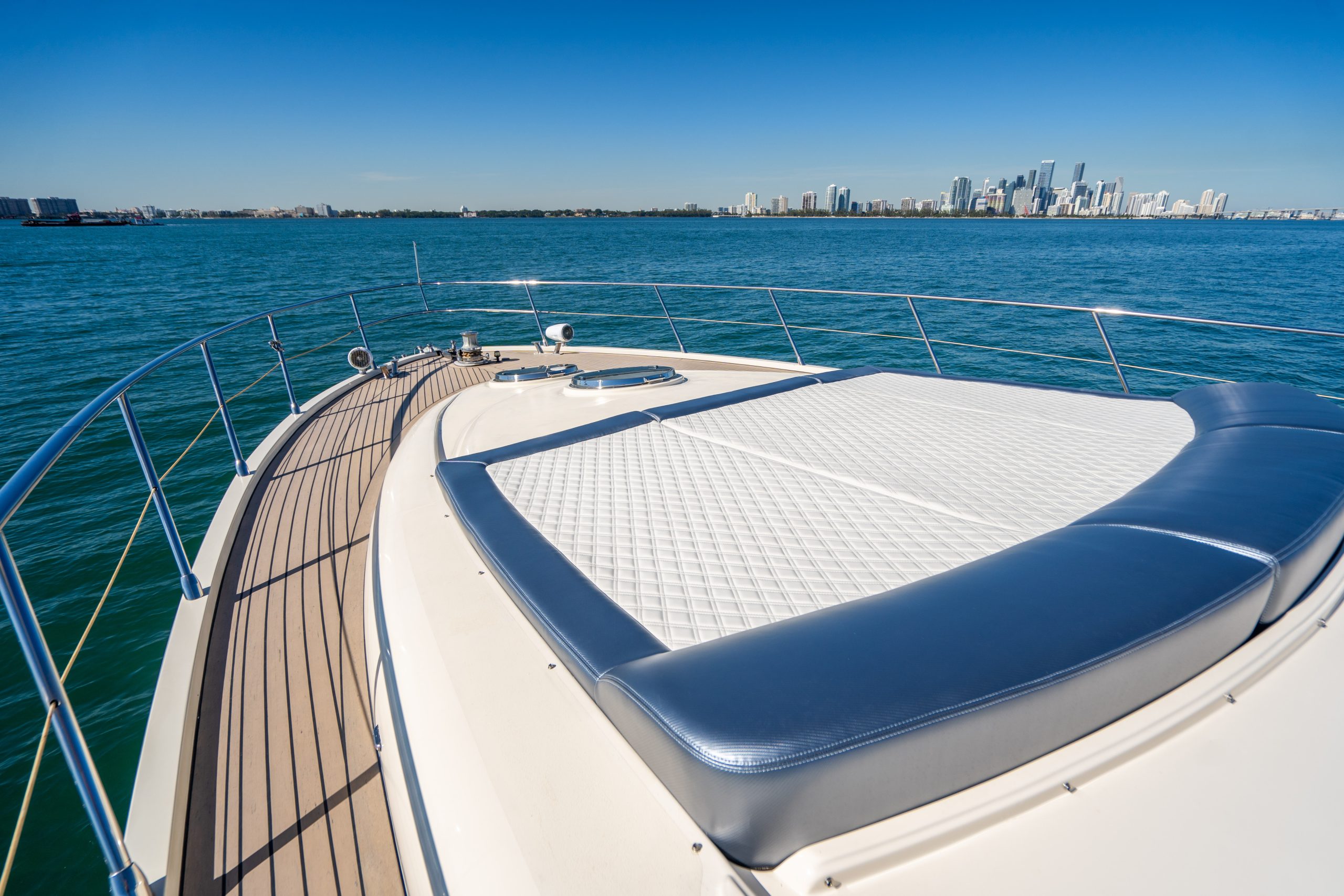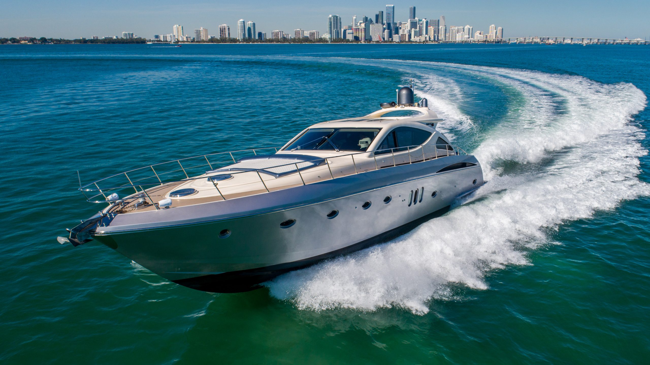 This luxury yacht rental is available for day charters as well as night cruises in Miami Florida. The vessel is a private yacht and the owner maintains it extremely well. The entire boat is well equipped with all the amenities of home.