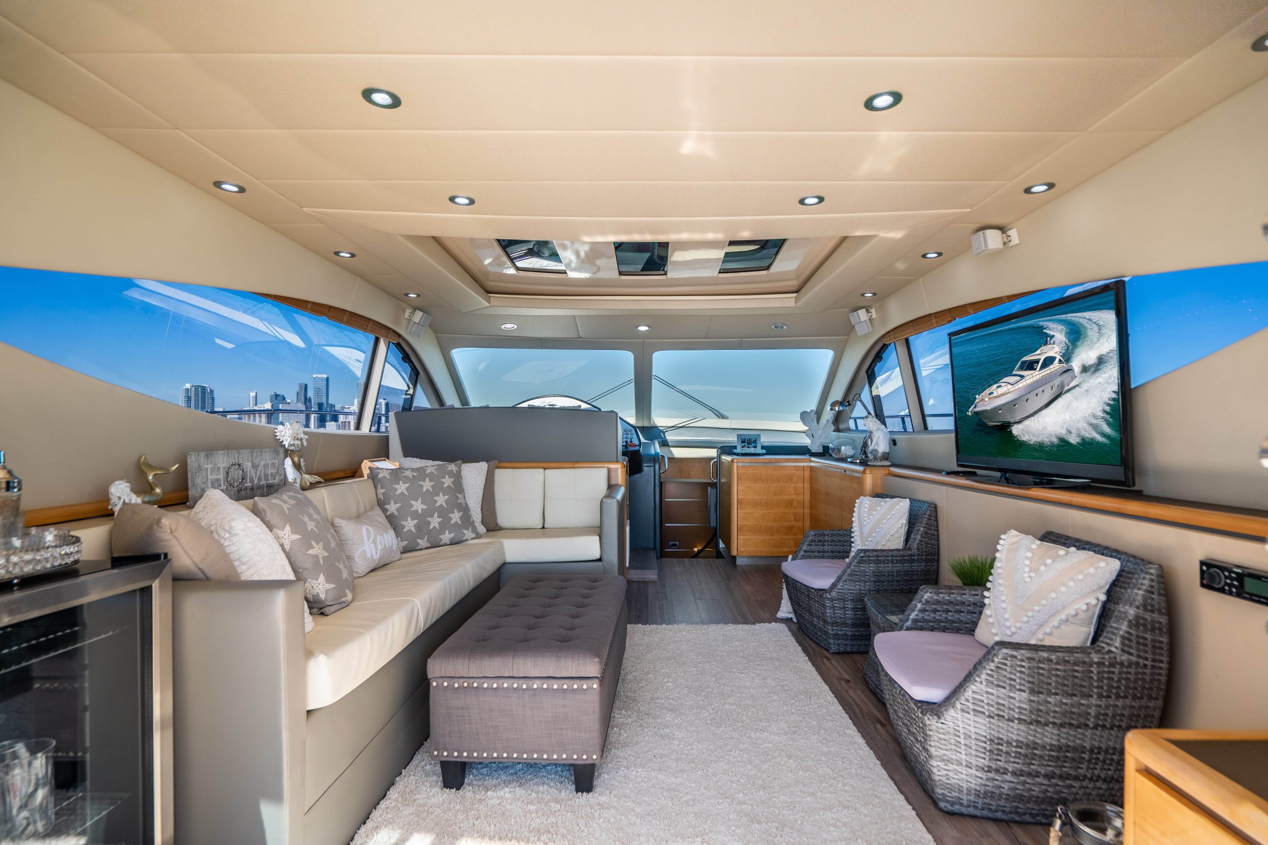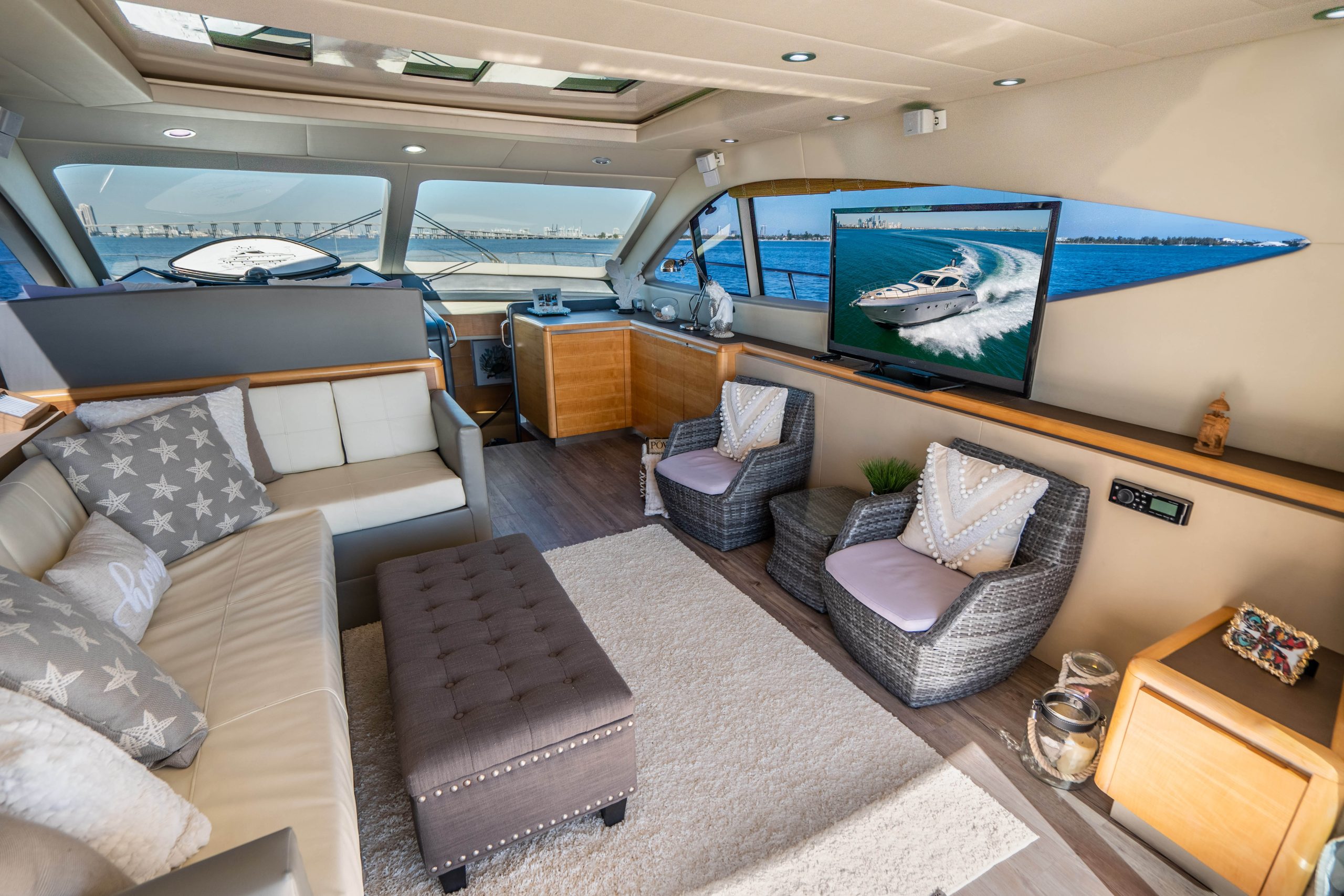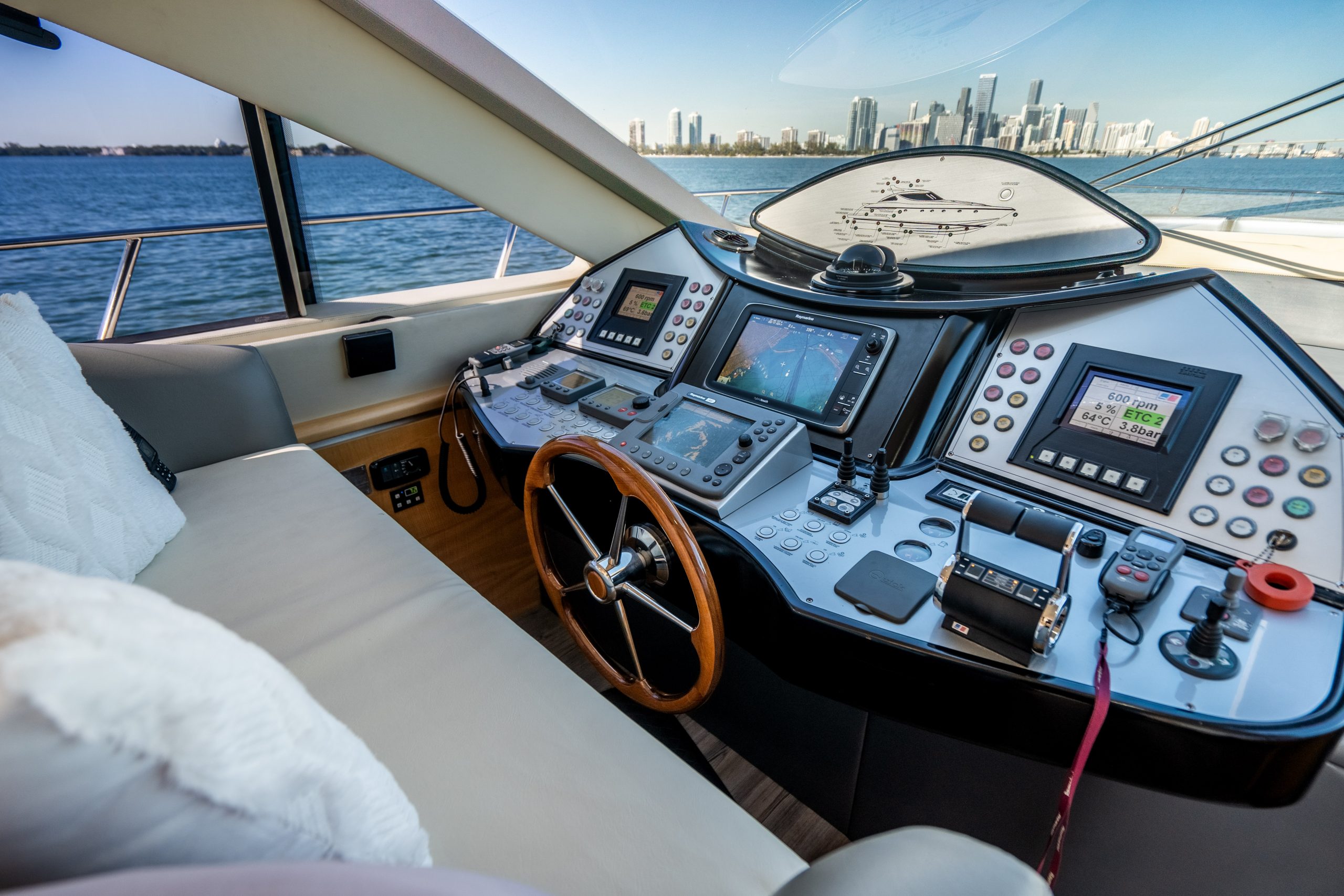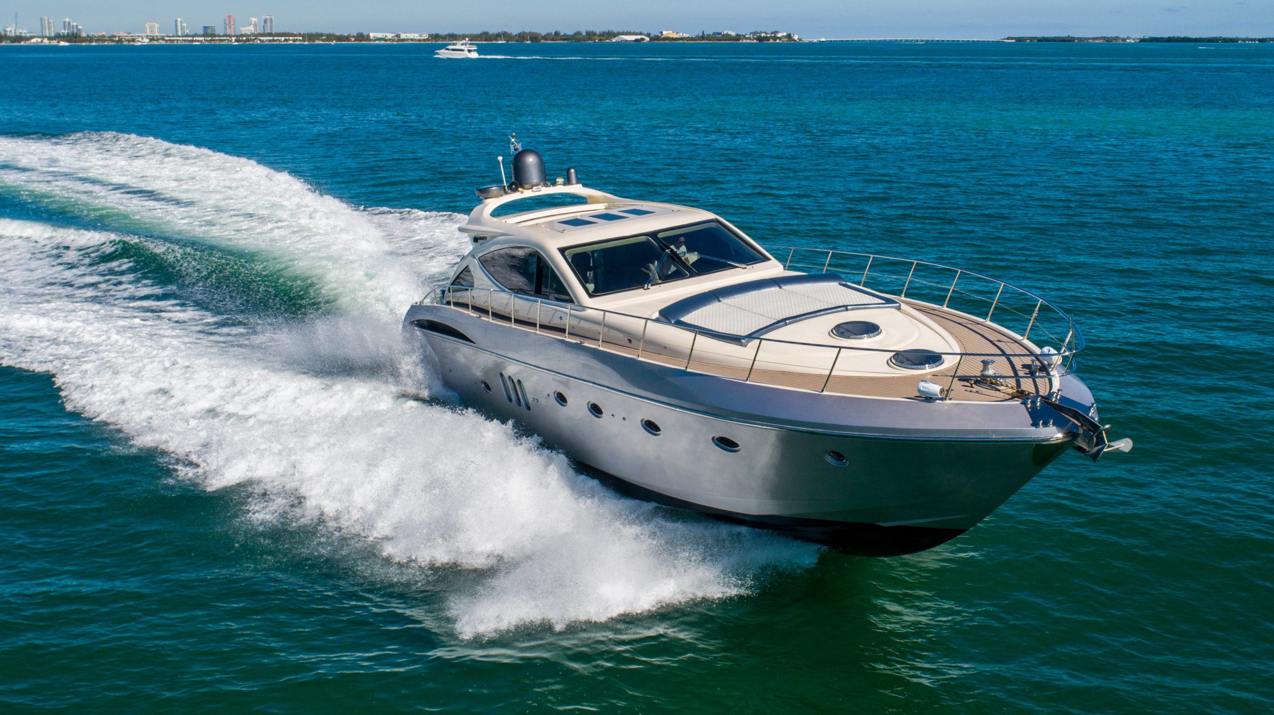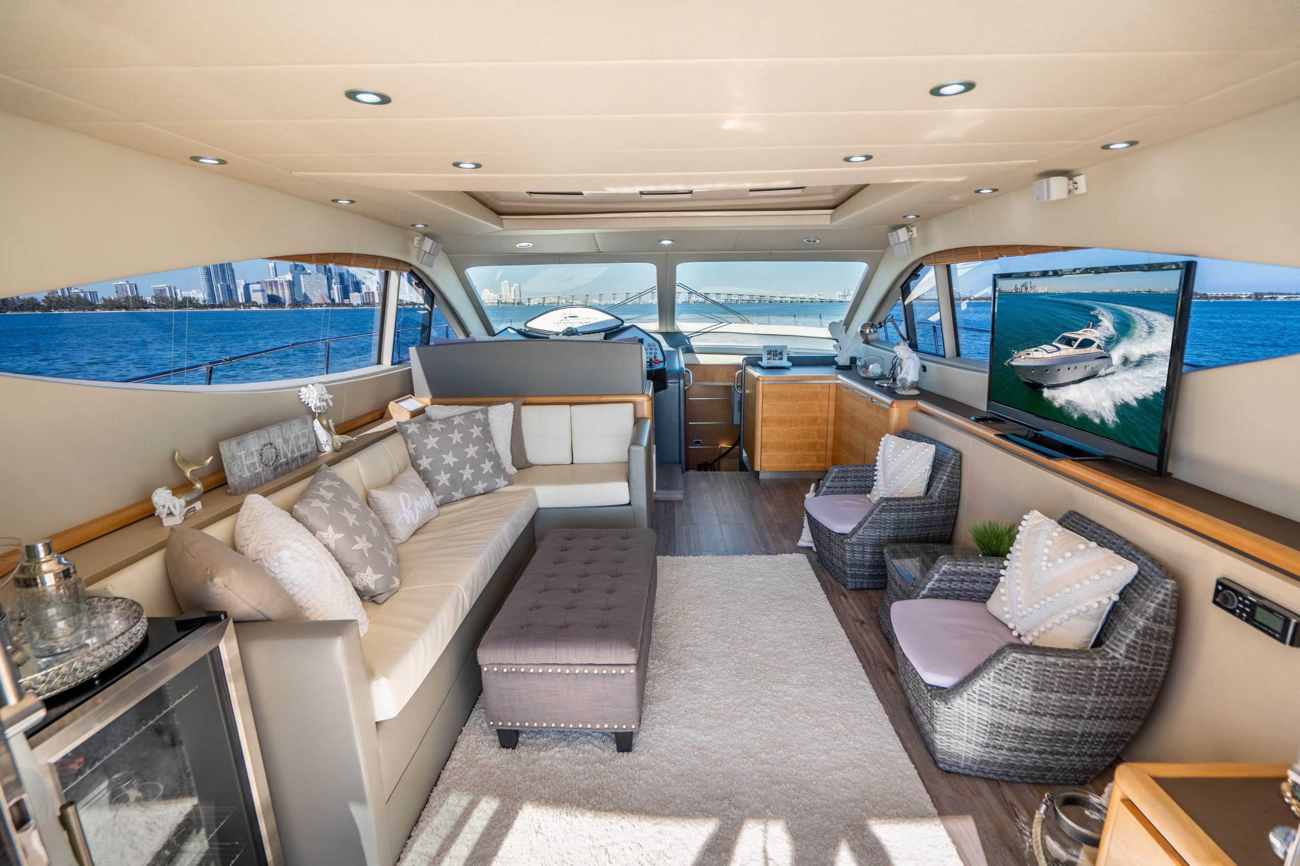 This luxury yacht rental is available for day charters as well as night cruises in Miami Florida. The vessel is a private yacht and the owner maintains it extremely well. The entire boat is well equipped with all the amenities of home.