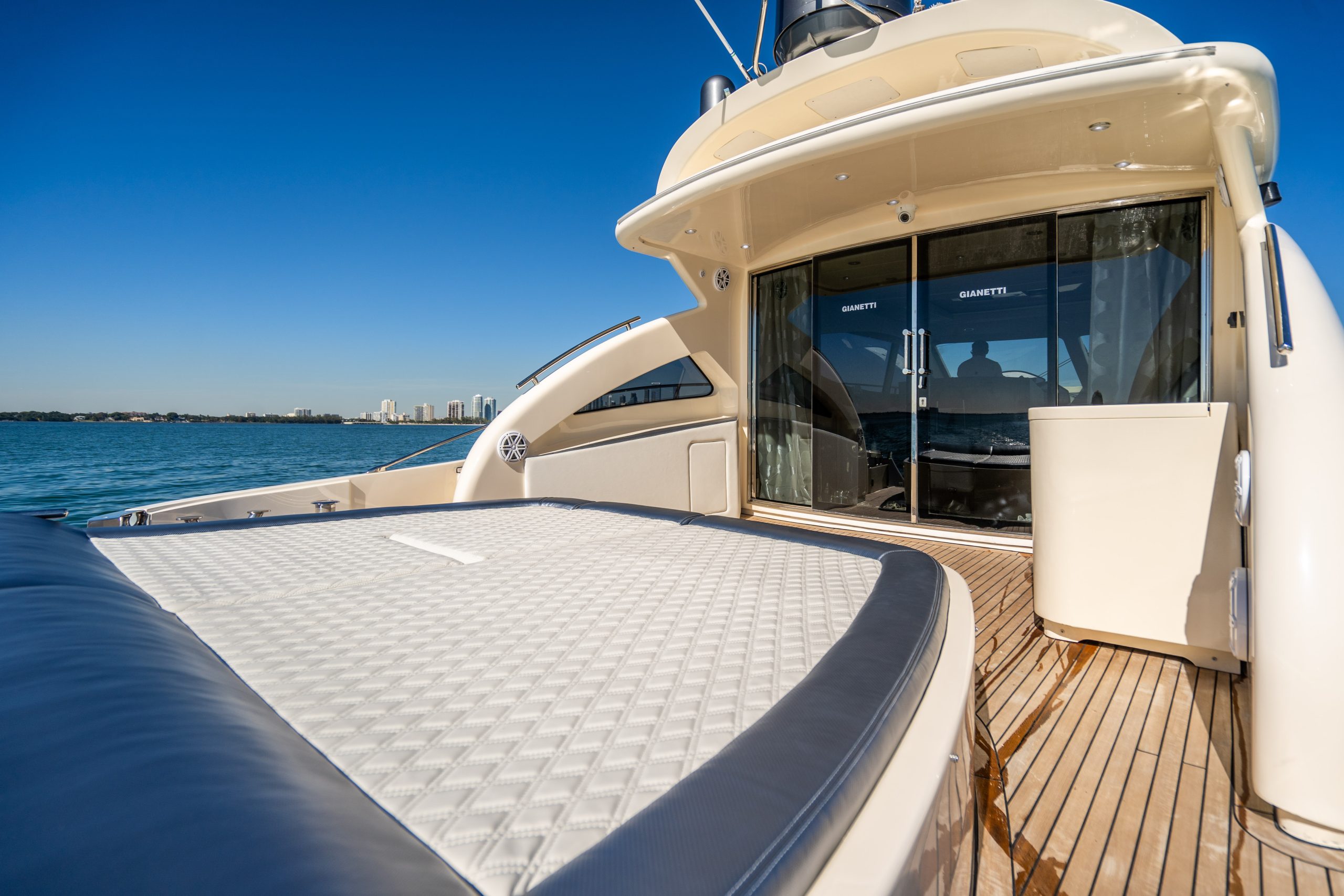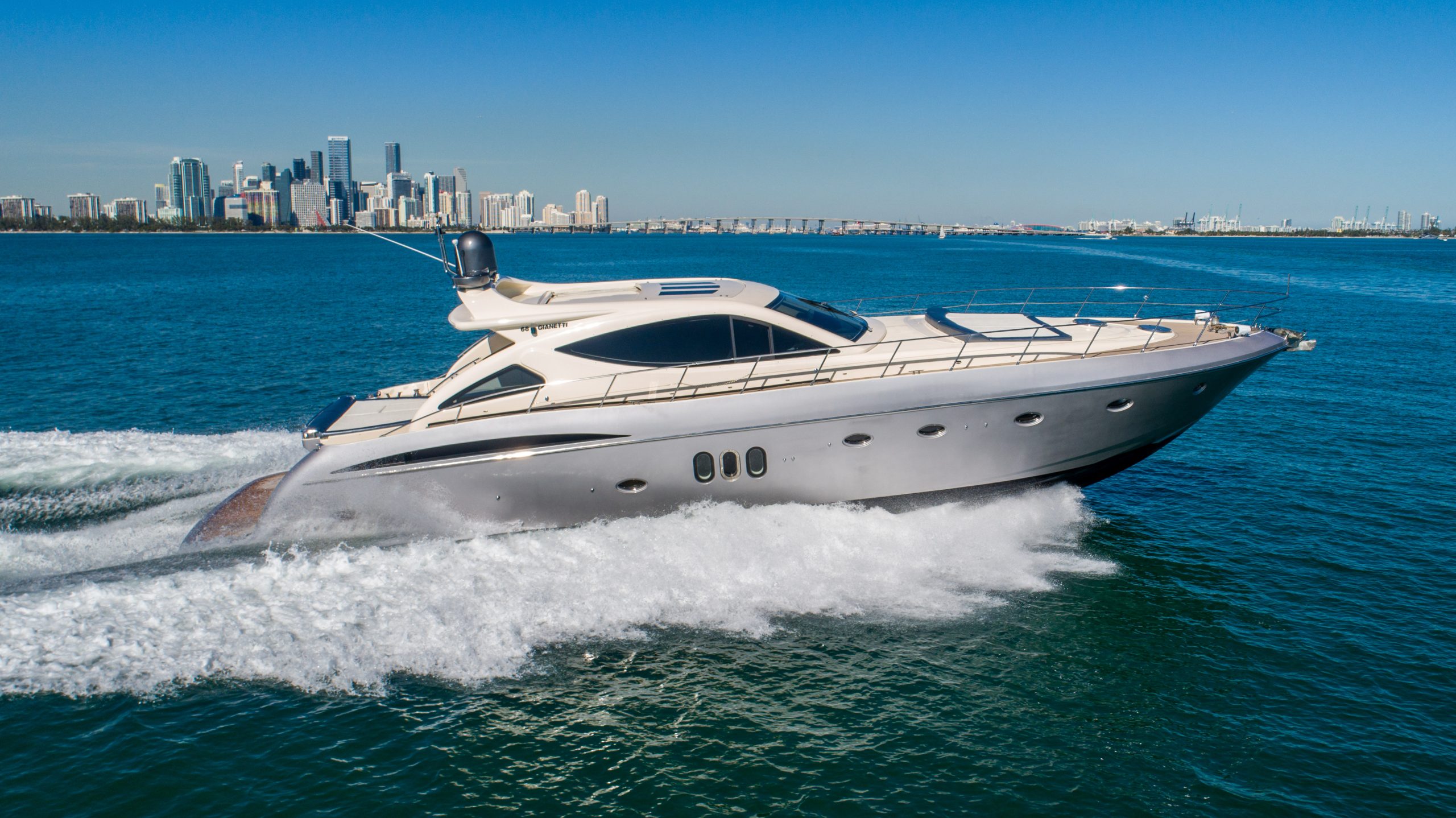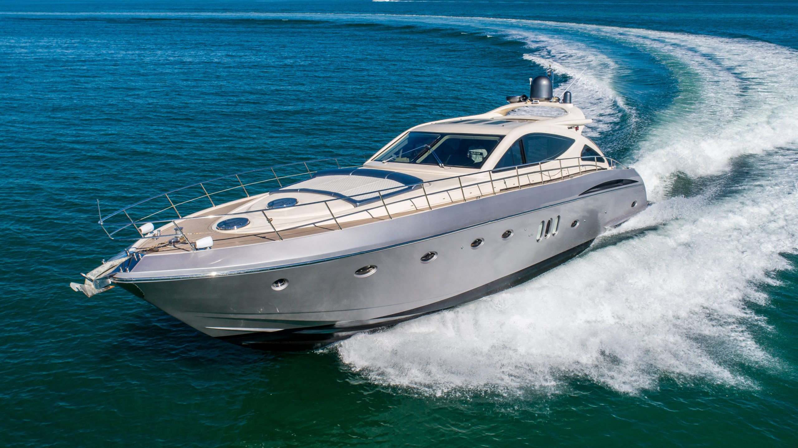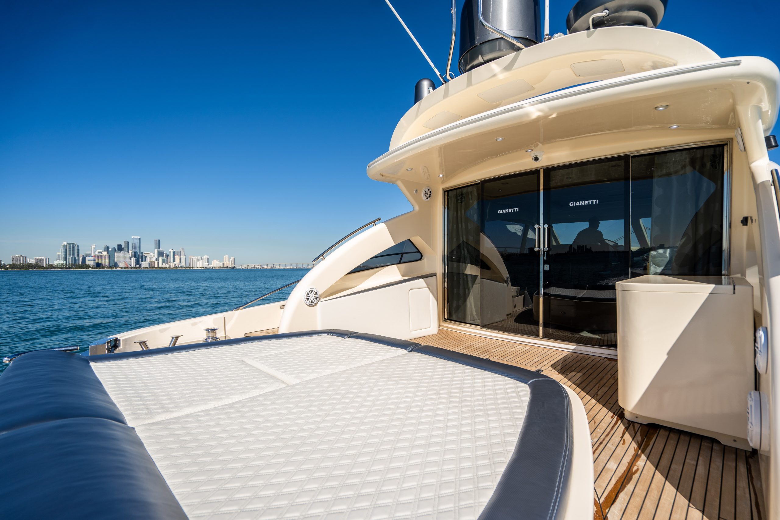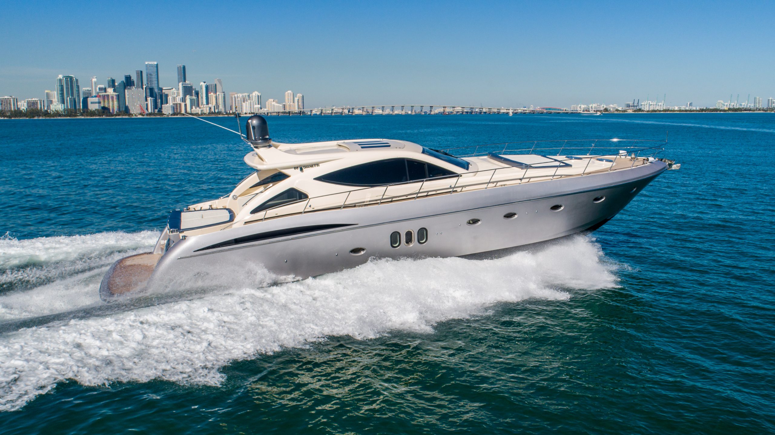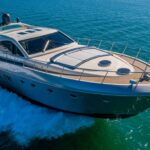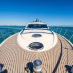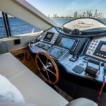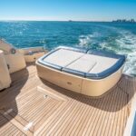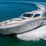 From the premium stereo system, flat-screen TV’s you will feel like you are in the lap of luxury. This yacht is particularly well arranged for hosting large parties with it’s wide open and thoughtfully arranged salon area. The 68 Gianetti is a sleek and fast vessel capable of cruising at around 30 knots.