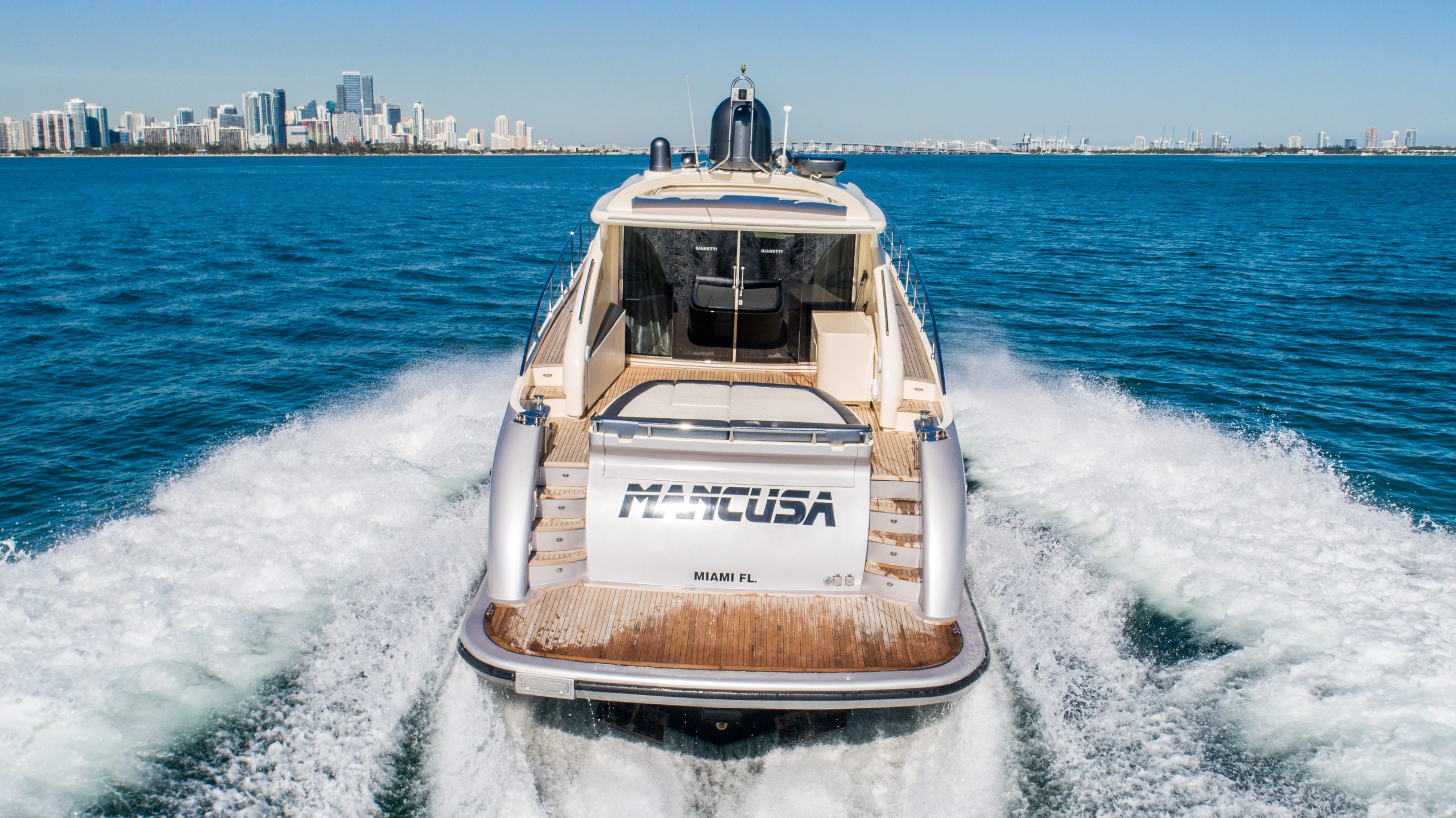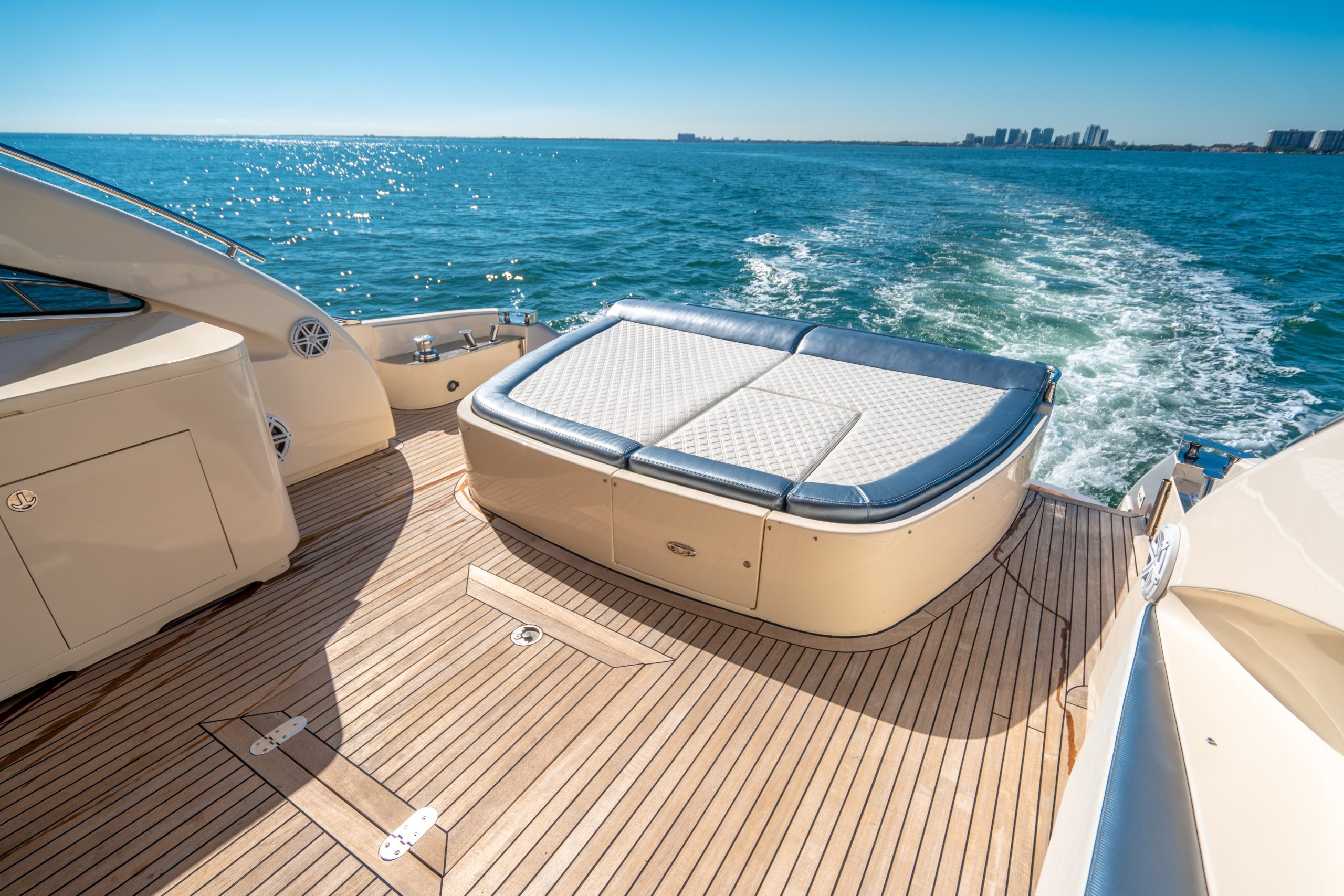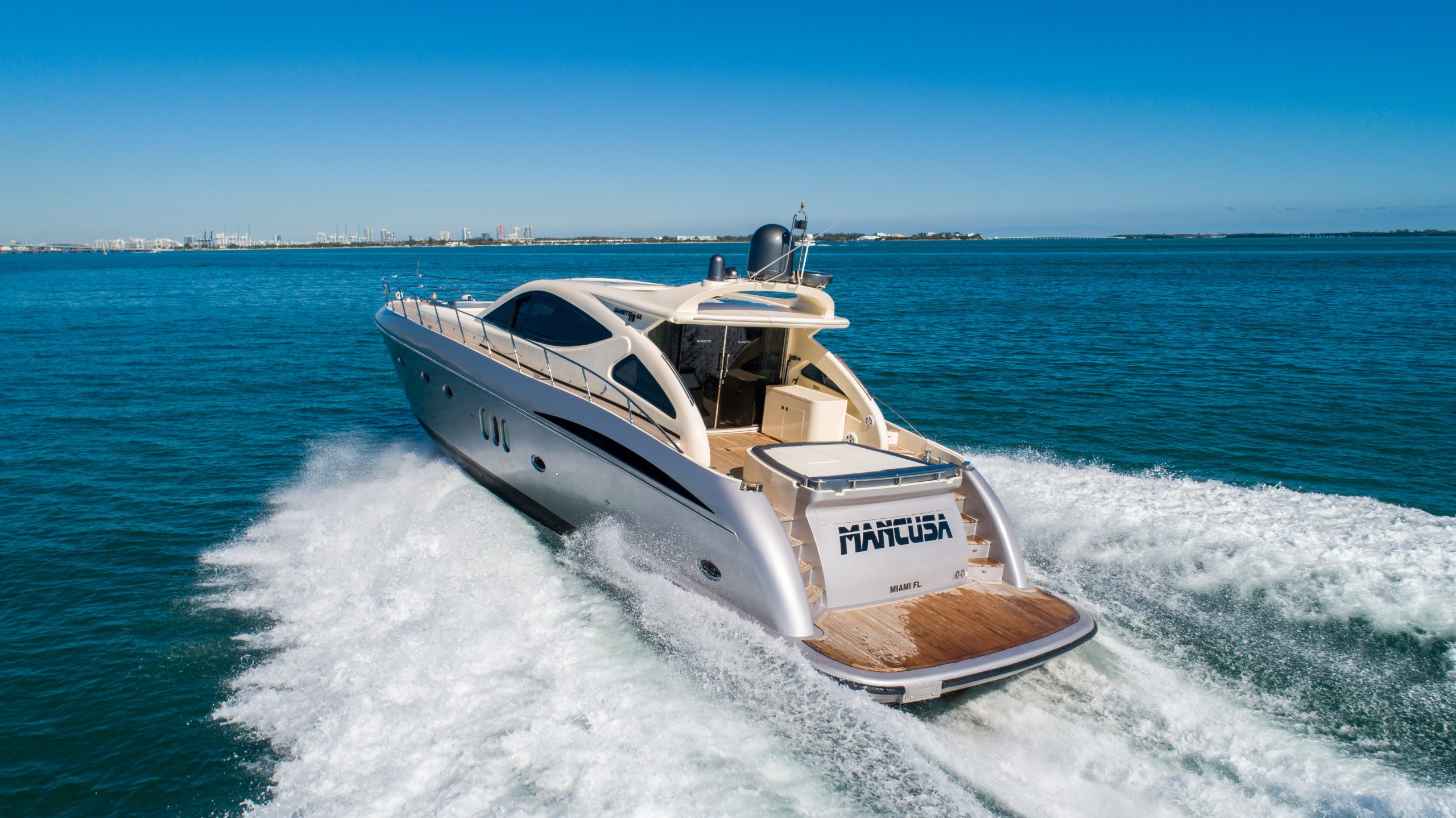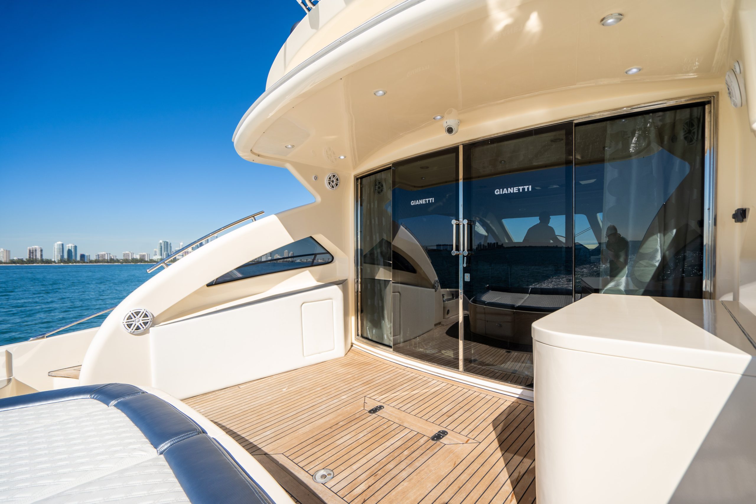 From the premium stereo system, flat-screen TV’s you will feel like you are in the lap of luxury. This yacht is particularly well arranged for hosting large parties with it’s wide open and thoughtfully arranged salon area. The 68 Gianetti is a sleek and fast vessel capable of cruising at around 30 knots.
