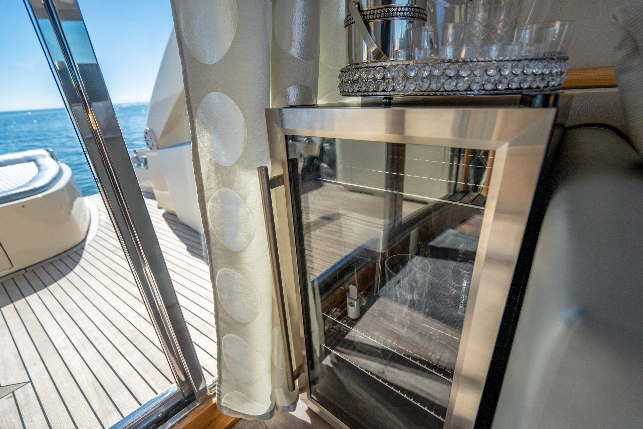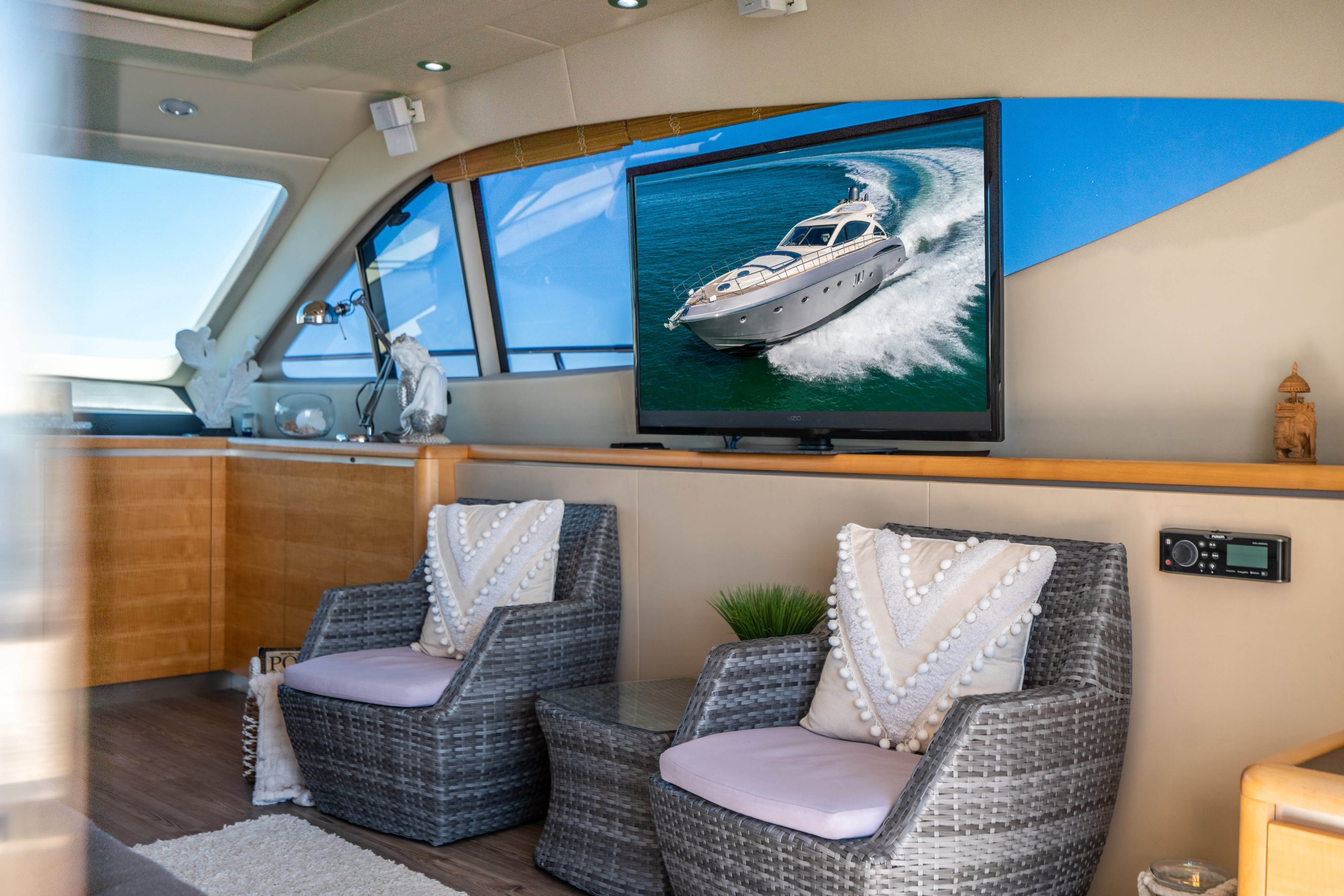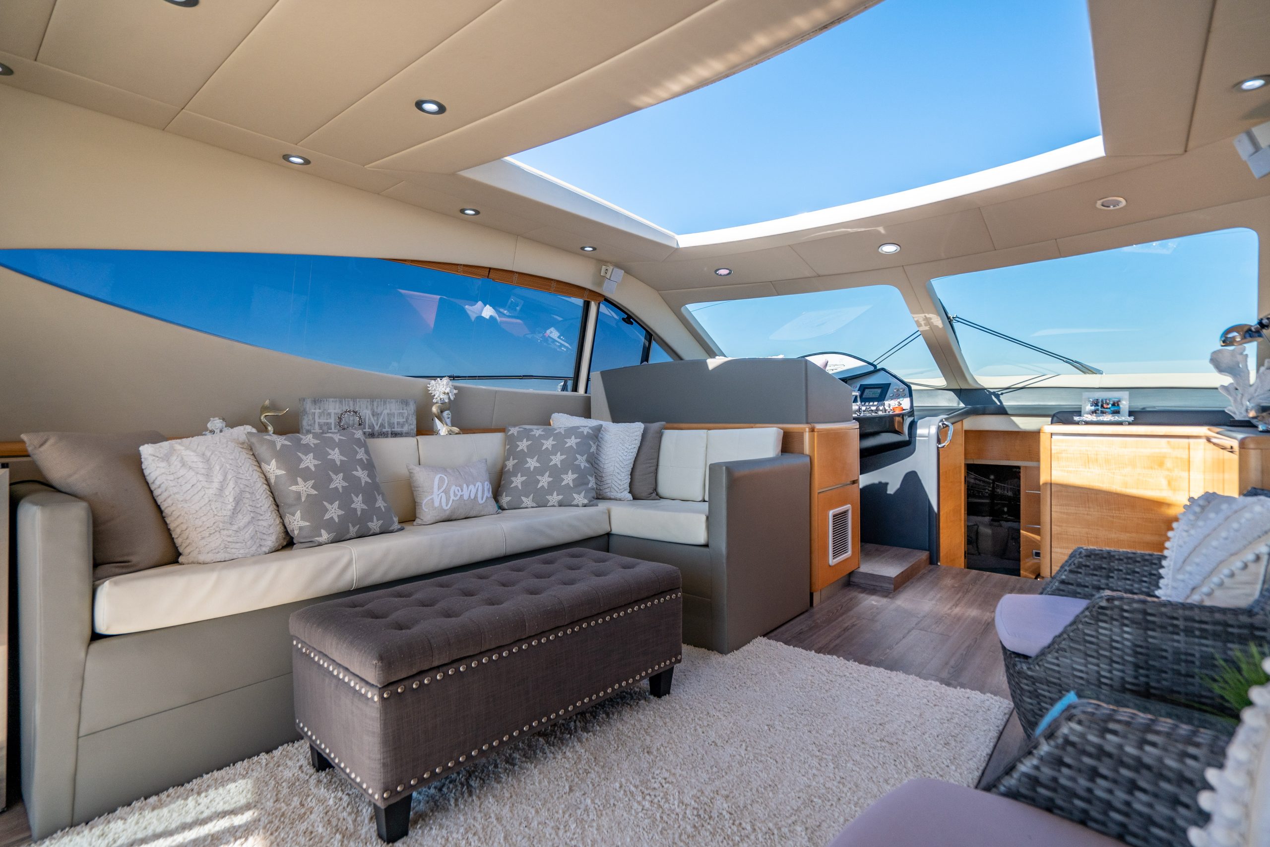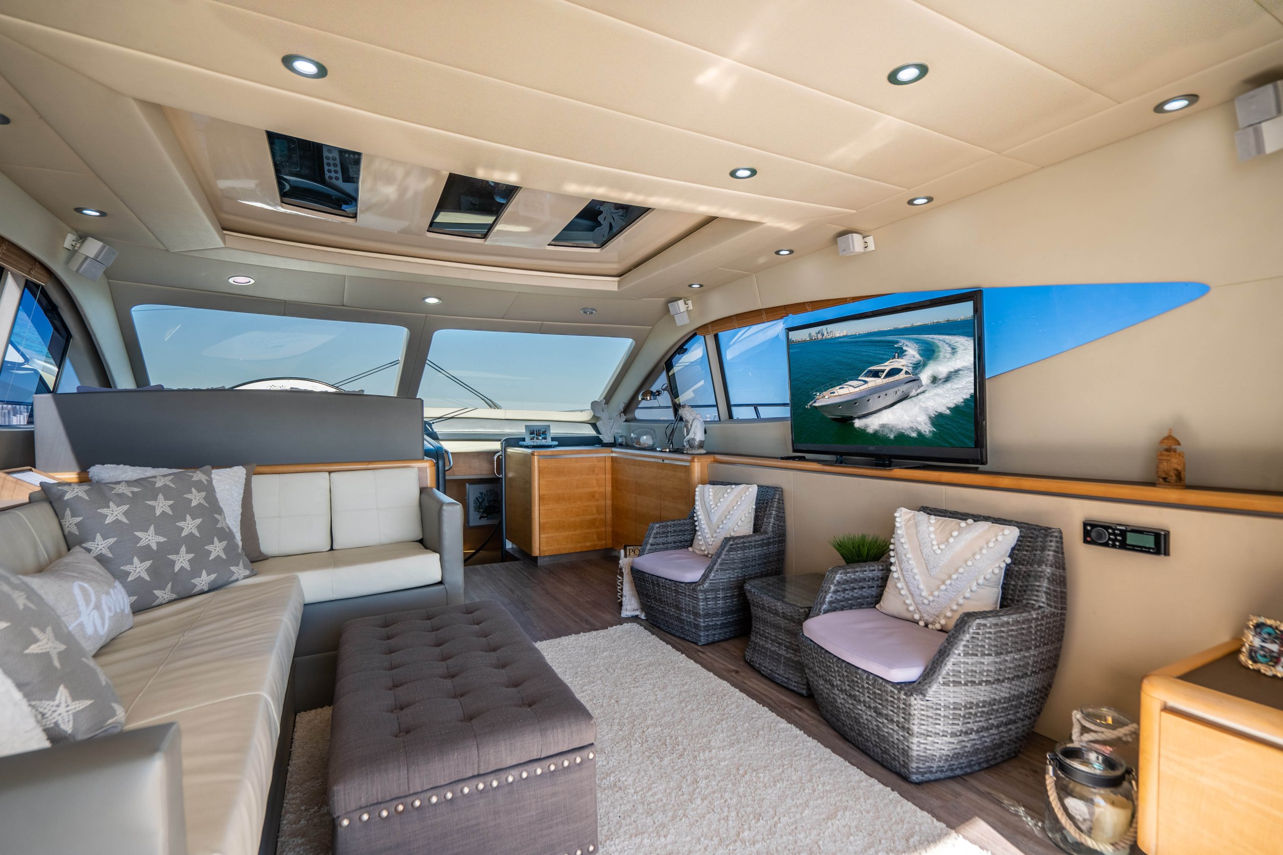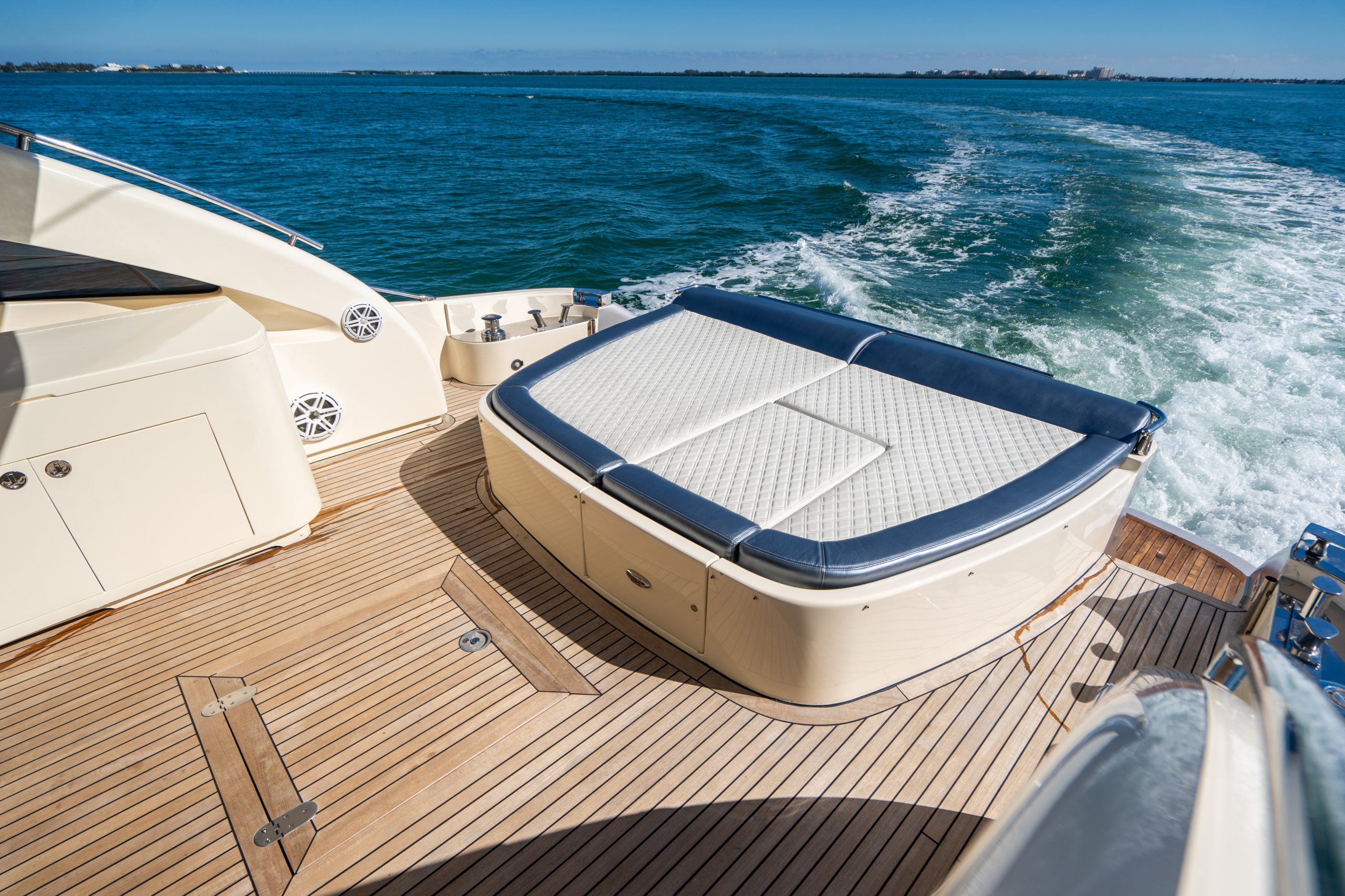 From the premium stereo system, flat-screen TV’s you will feel like you are in the lap of luxury. This yacht is particularly well arranged for hosting large parties with it’s wide open and thoughtfully arranged salon area. The 68 Gianetti is a sleek and fast vessel capable of cruising at around 30 knots.