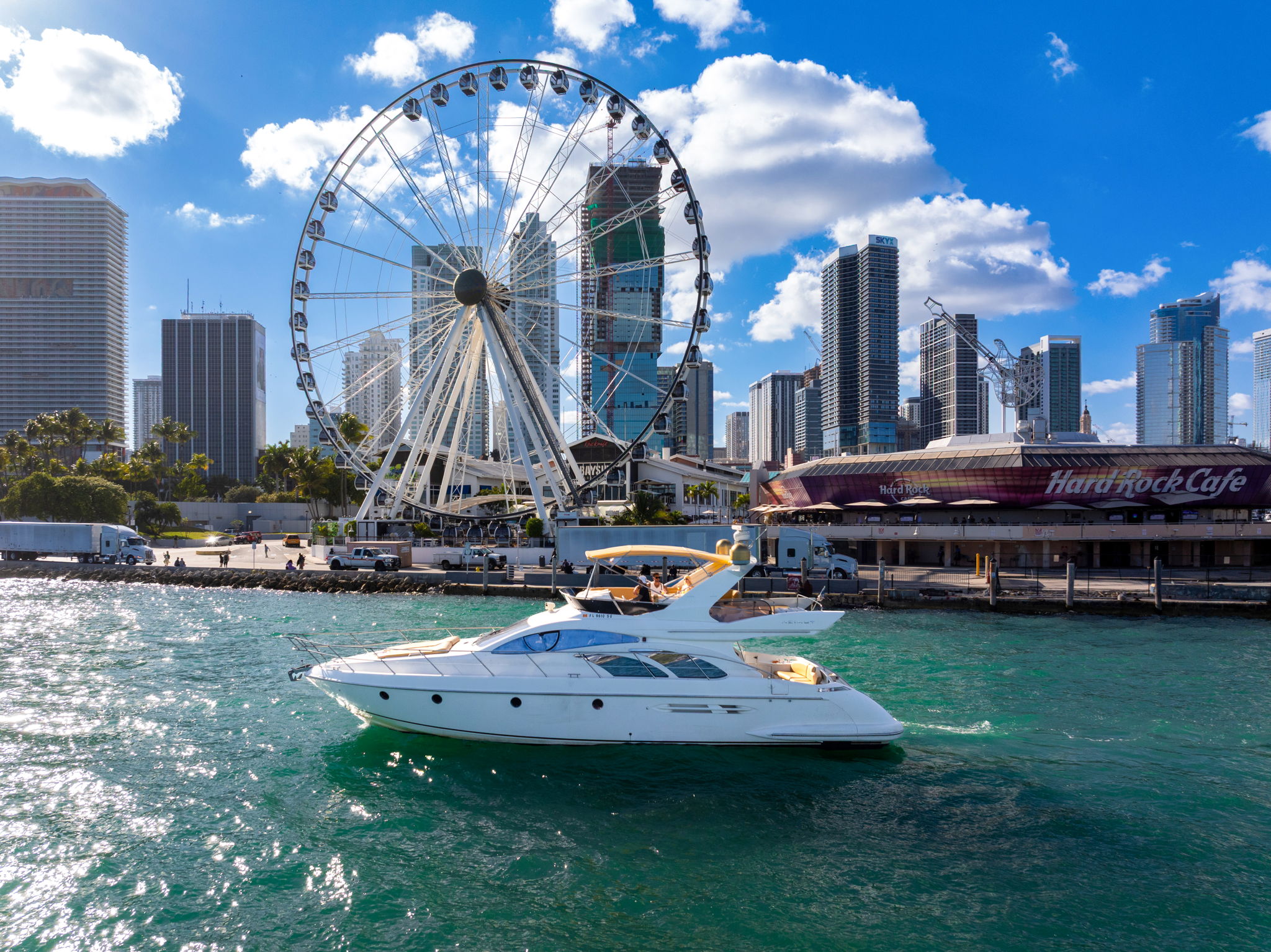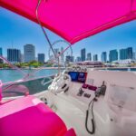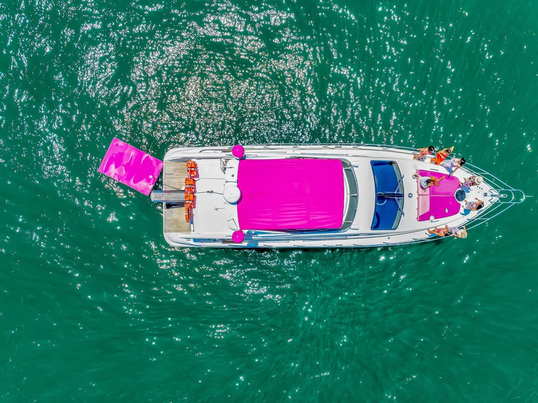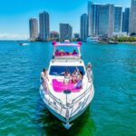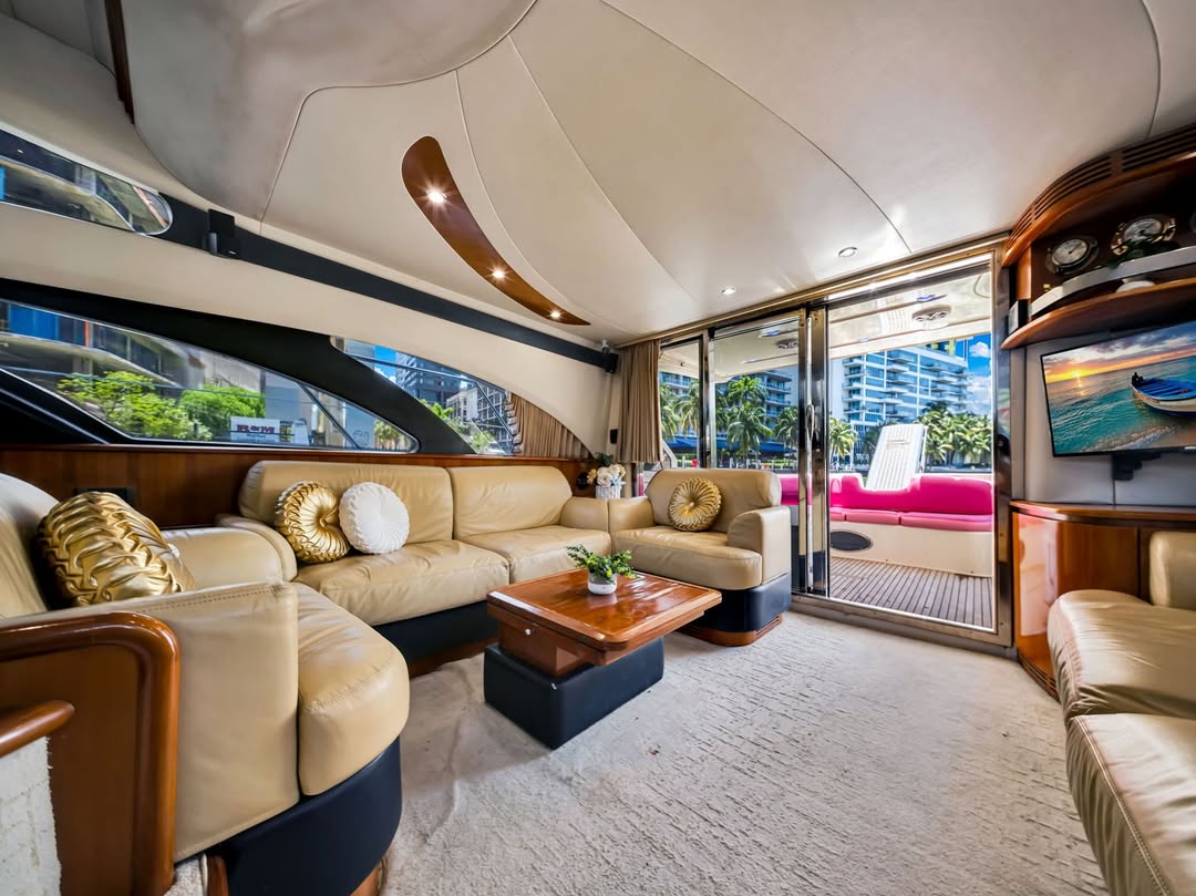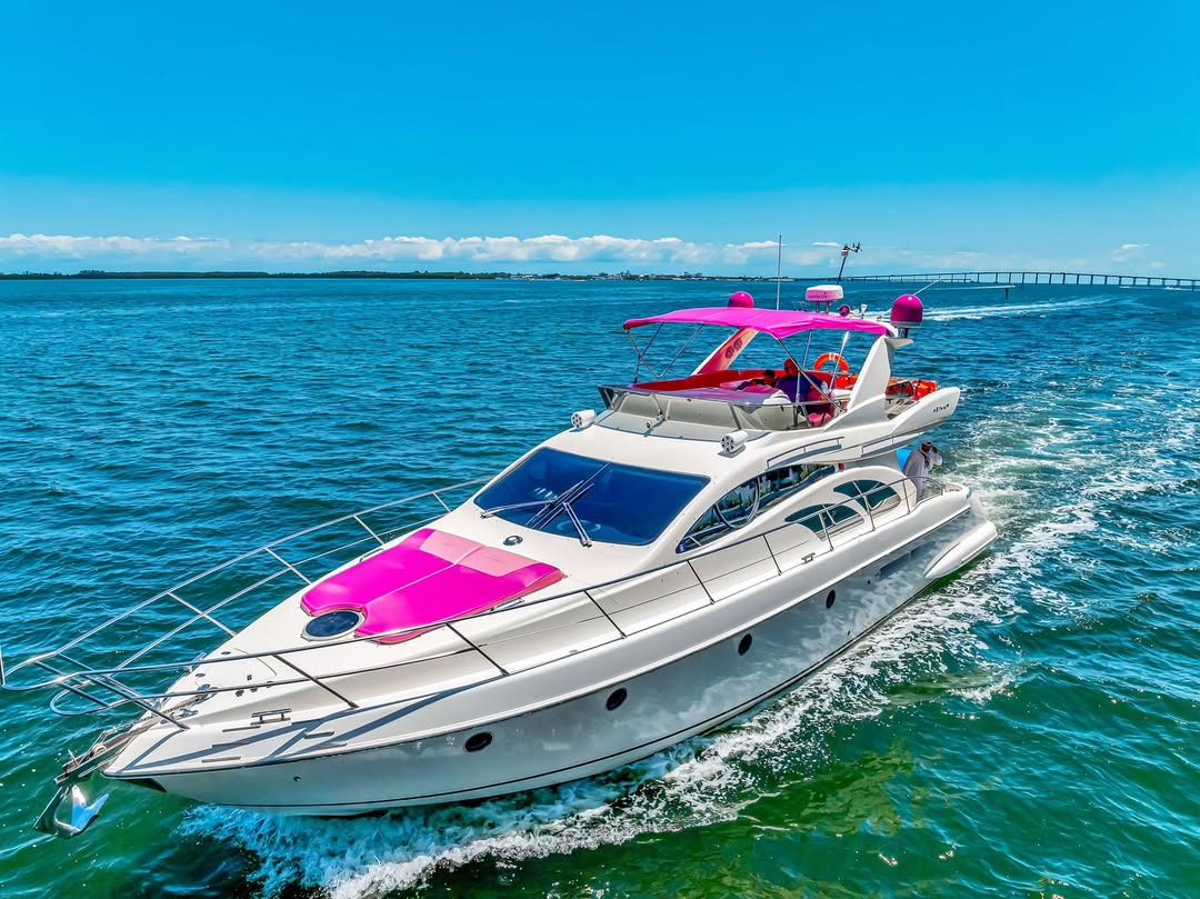 55 feet of sleek lines, pink accents, and pure Miami energy. Perfect for birthdays, bachelorettes, or a laid-back day with the girls. Stretch out on the bow, sip something cold up top, and let the city watch you glide by.