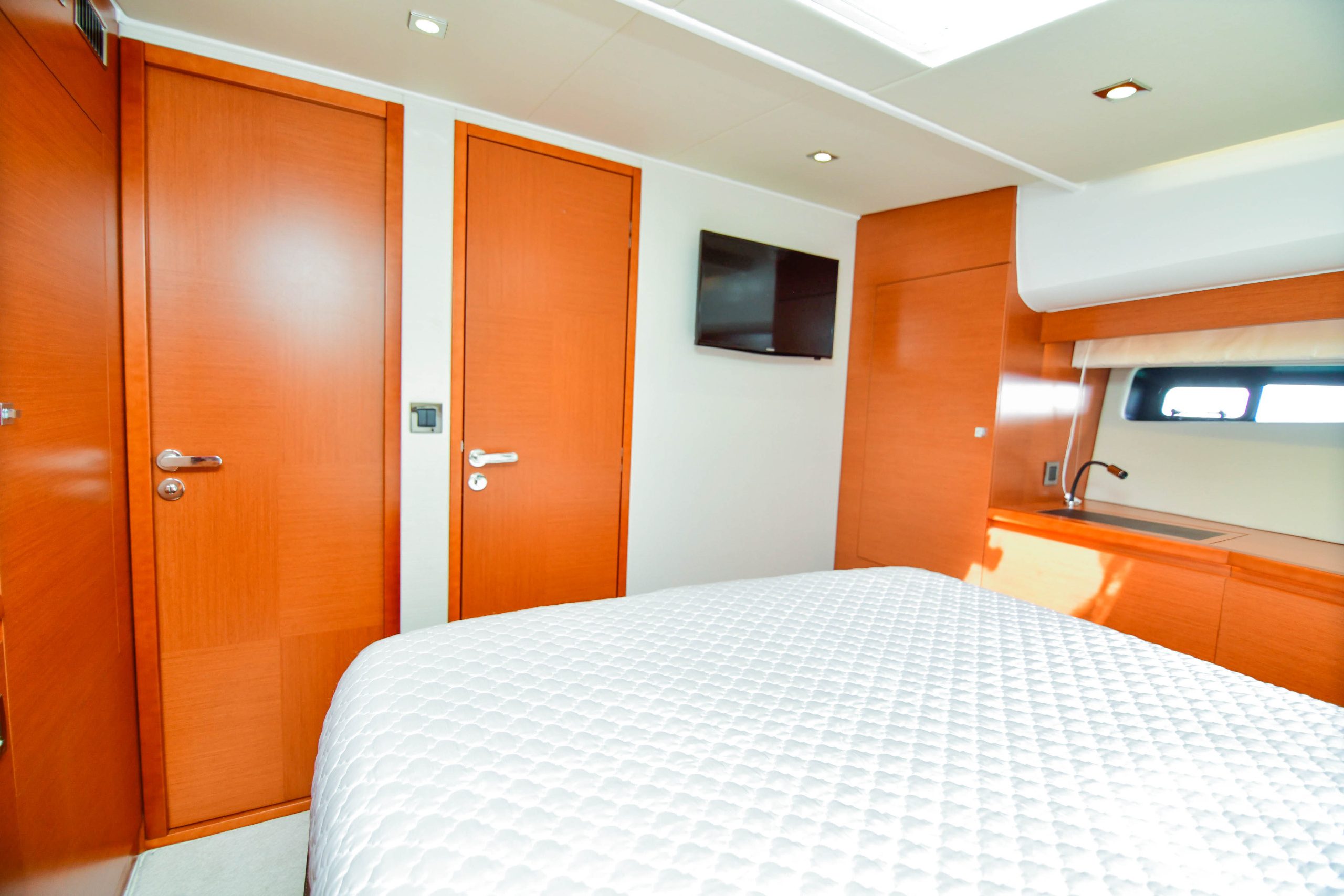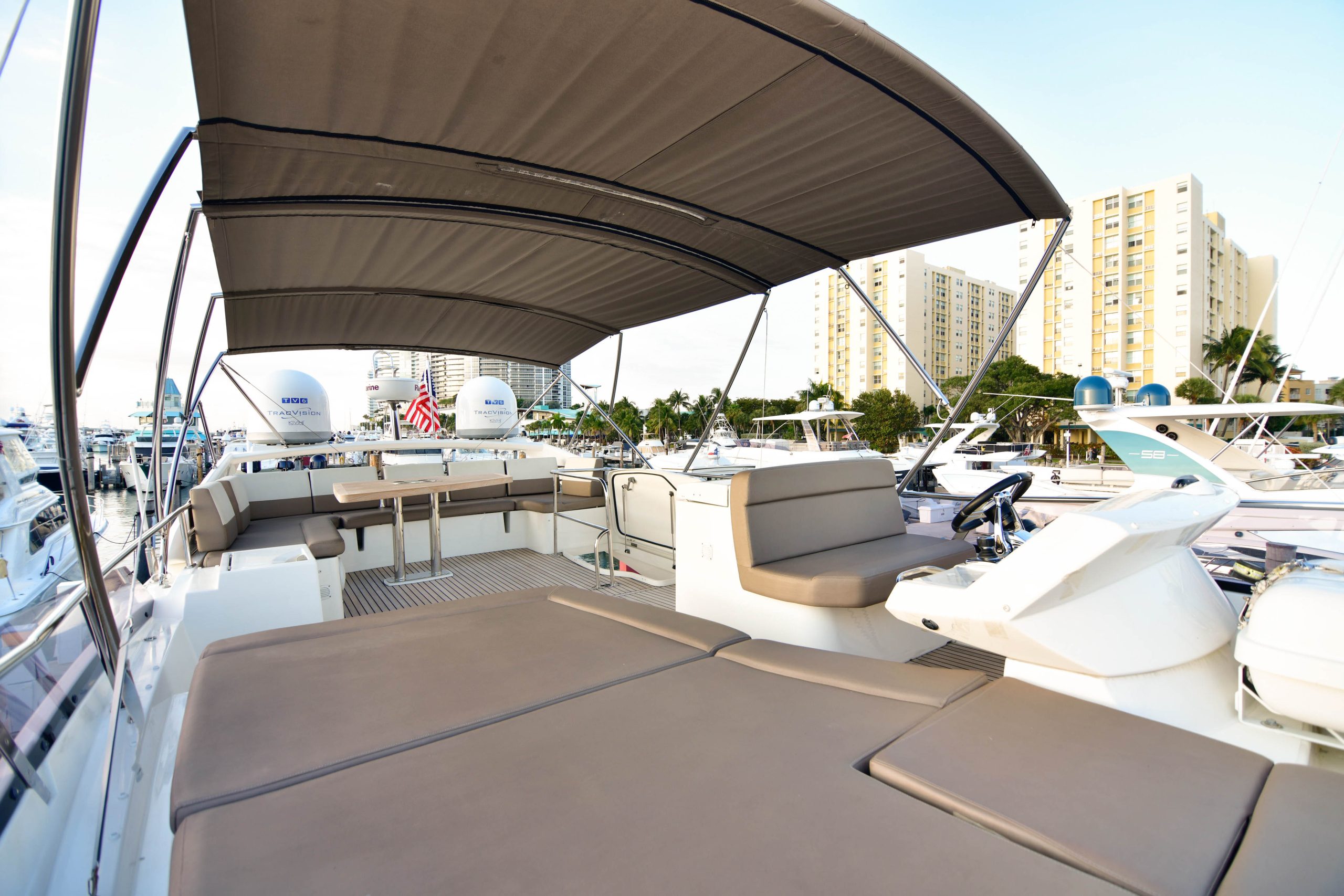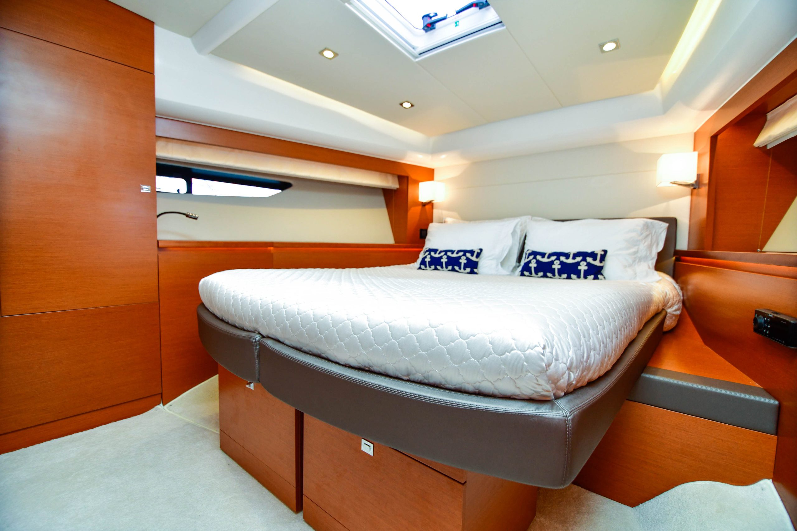 Originally introduced in 2010, the Prestige 60 was the largest model built at that time by a division of Jeanneau, and one of the first yachts of this size to incorporate Volvo Penta IPS propulsion. “IPS use in smaller boats was growing steadily at the time, but IPS2 for larger yachts had just been introduced,” said Nicolas Harvey, president of Jeanneau America, “and it required a boat that was both light and strong to maximize its potential—a considerable undertaking in such a large vessel.”